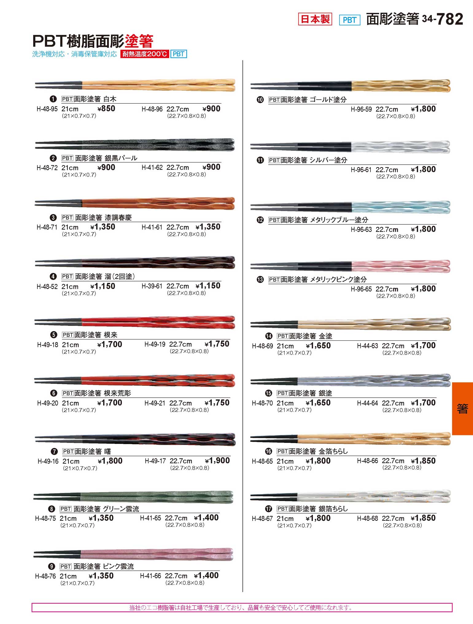 PBT面彫塗箸 金塗 22.7cm
