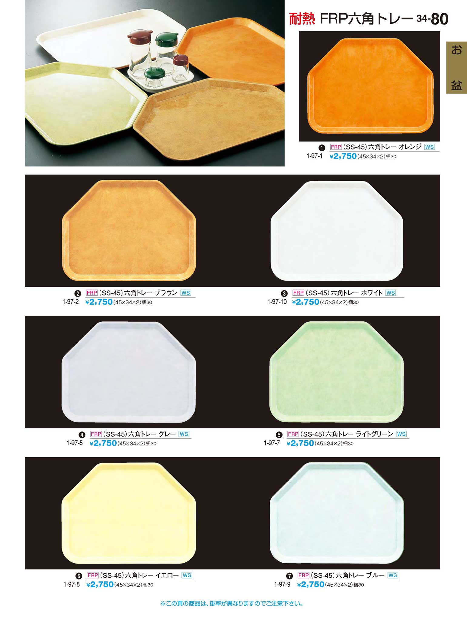 FRP(SS-45)六角トレー オレンジWS(上90)(商品番号1-97-1)