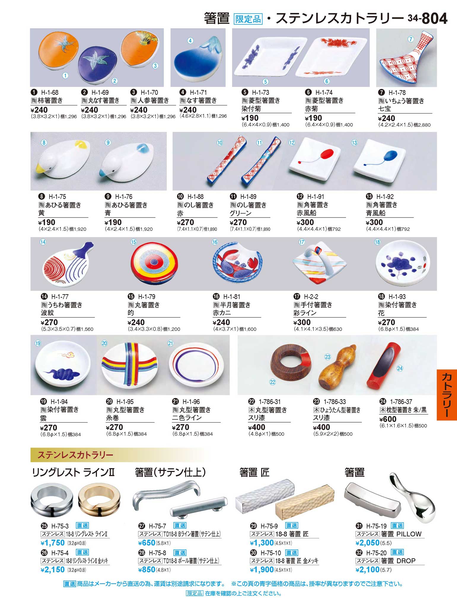 陶手付箸置き 彩ライン限定品(商品番号H-2-2)