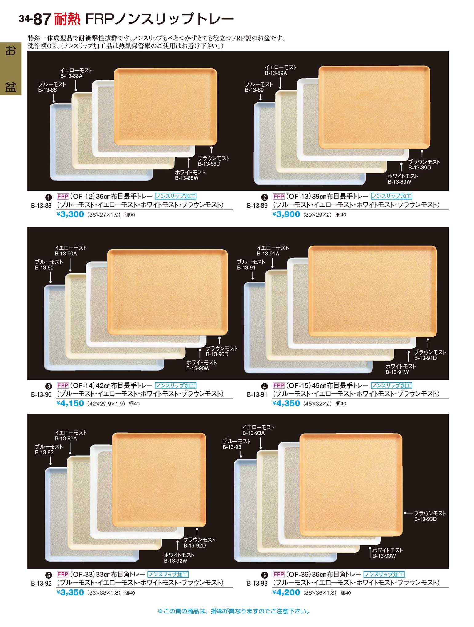 FRP(OF-36)36cm布目角トレー ブラウンモストNSノンスリップ加工 WS(上90)