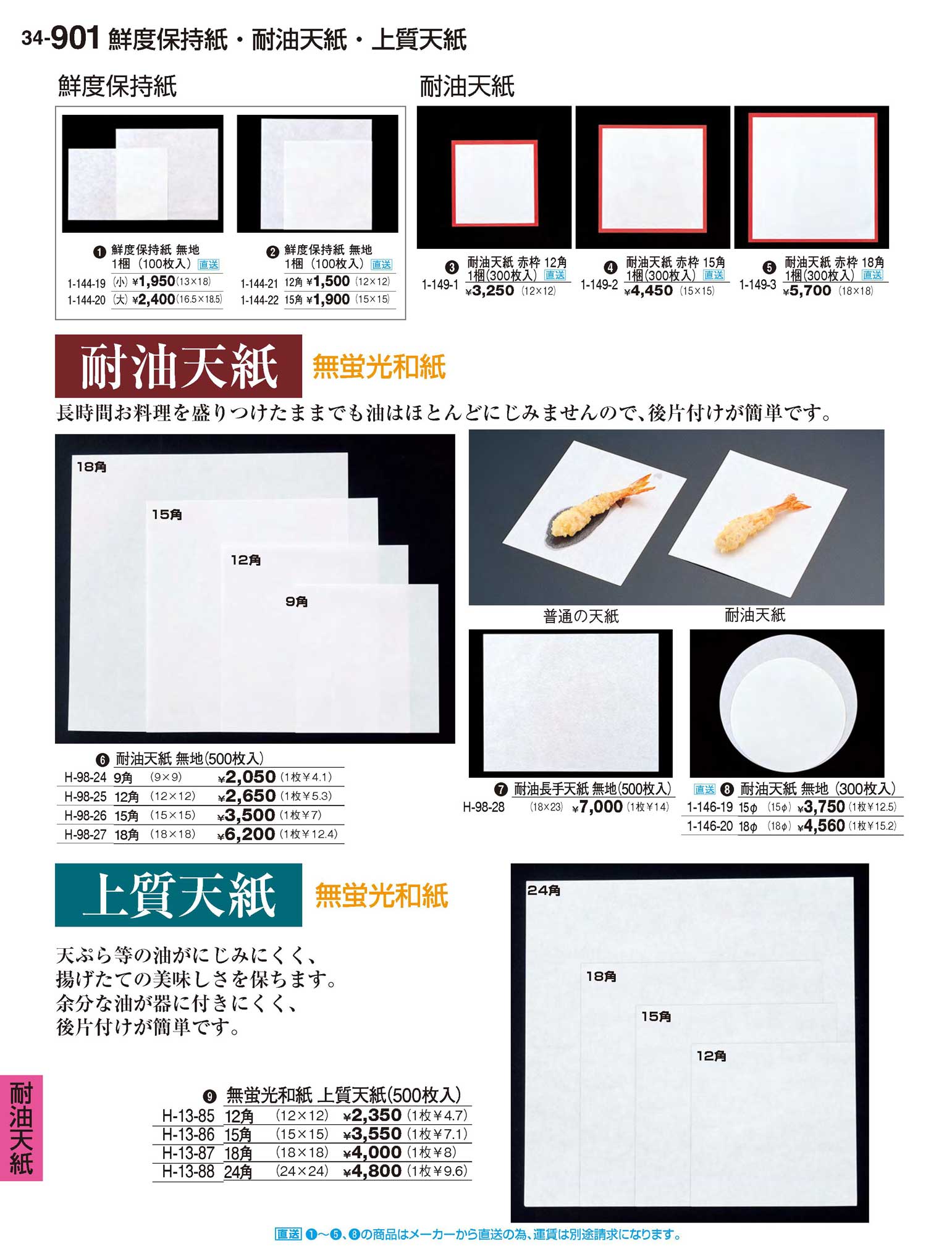 耐油天紙 赤枠 18角 (300枚入)運賃別途