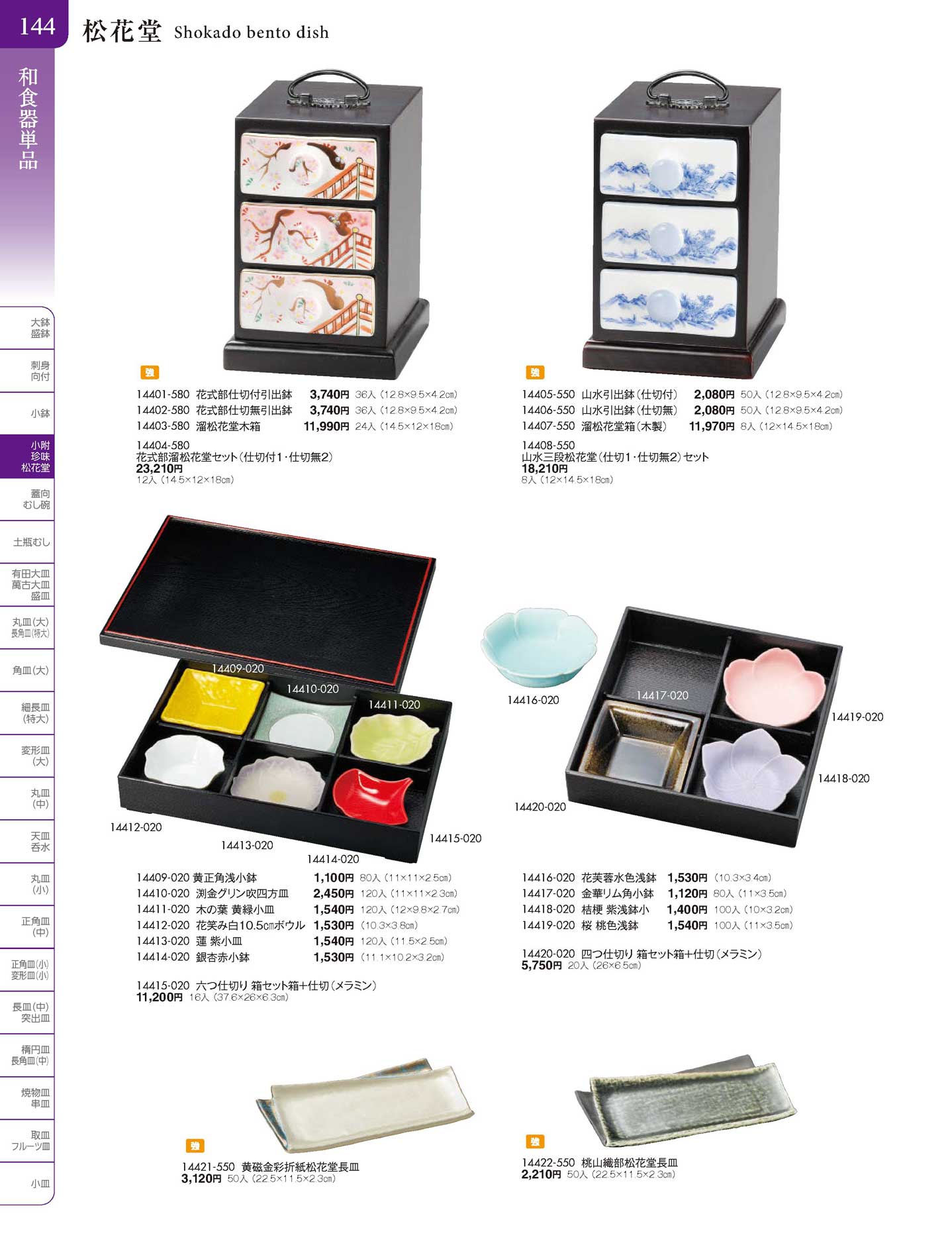 花式部溜松花堂セット(仕切付1・仕切無2)