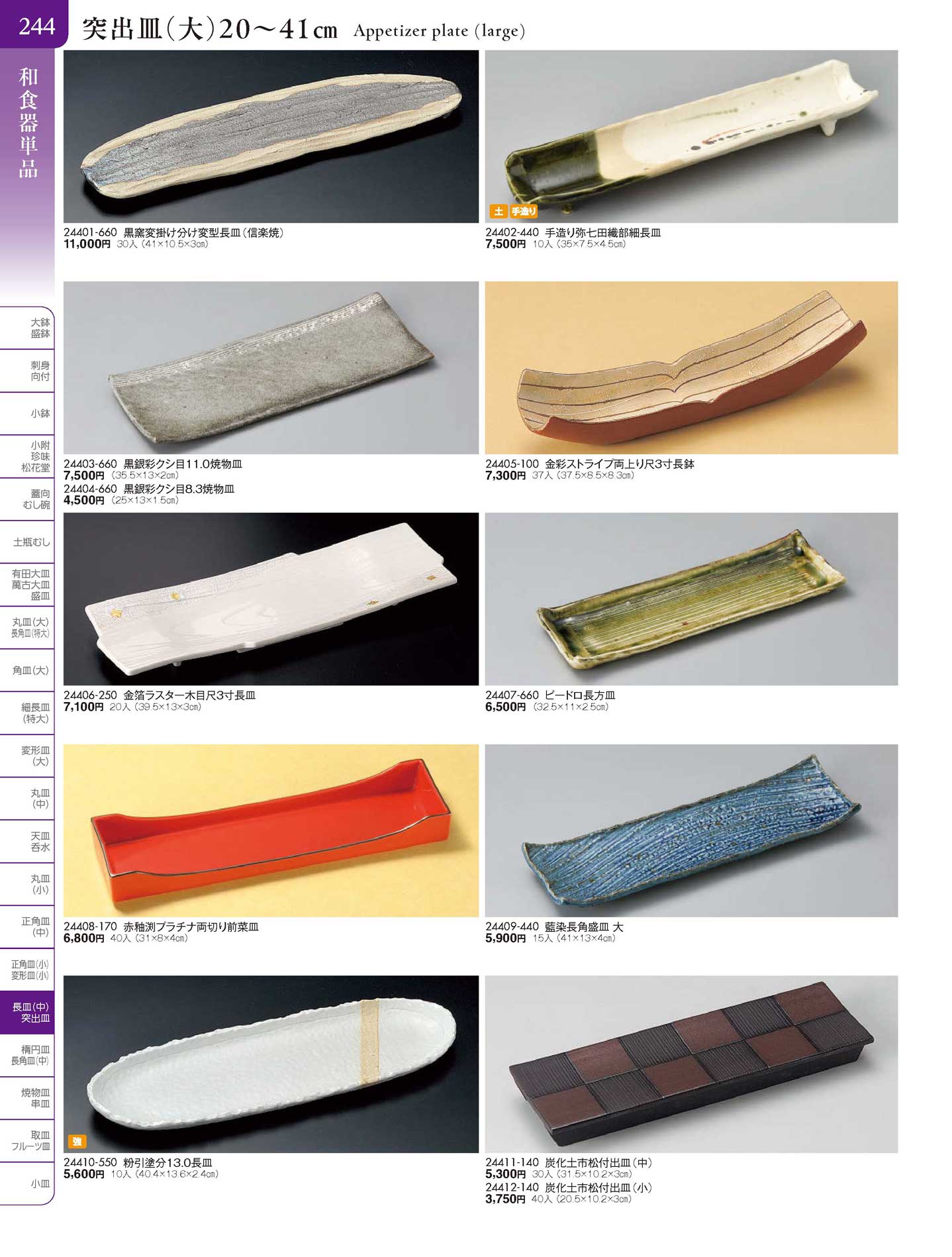 手造り弥七田織部細長皿