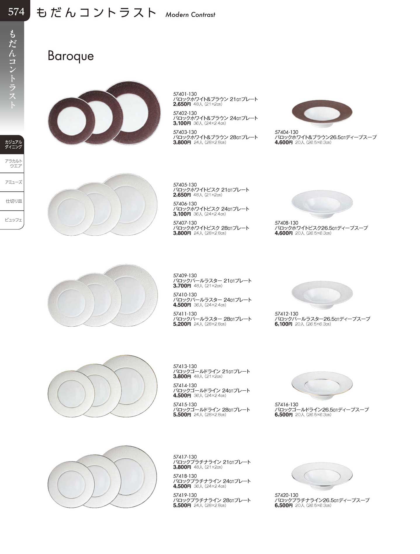 バロックホワイト&ブラウン26.5cmディープスープ(商品番号57404-130)