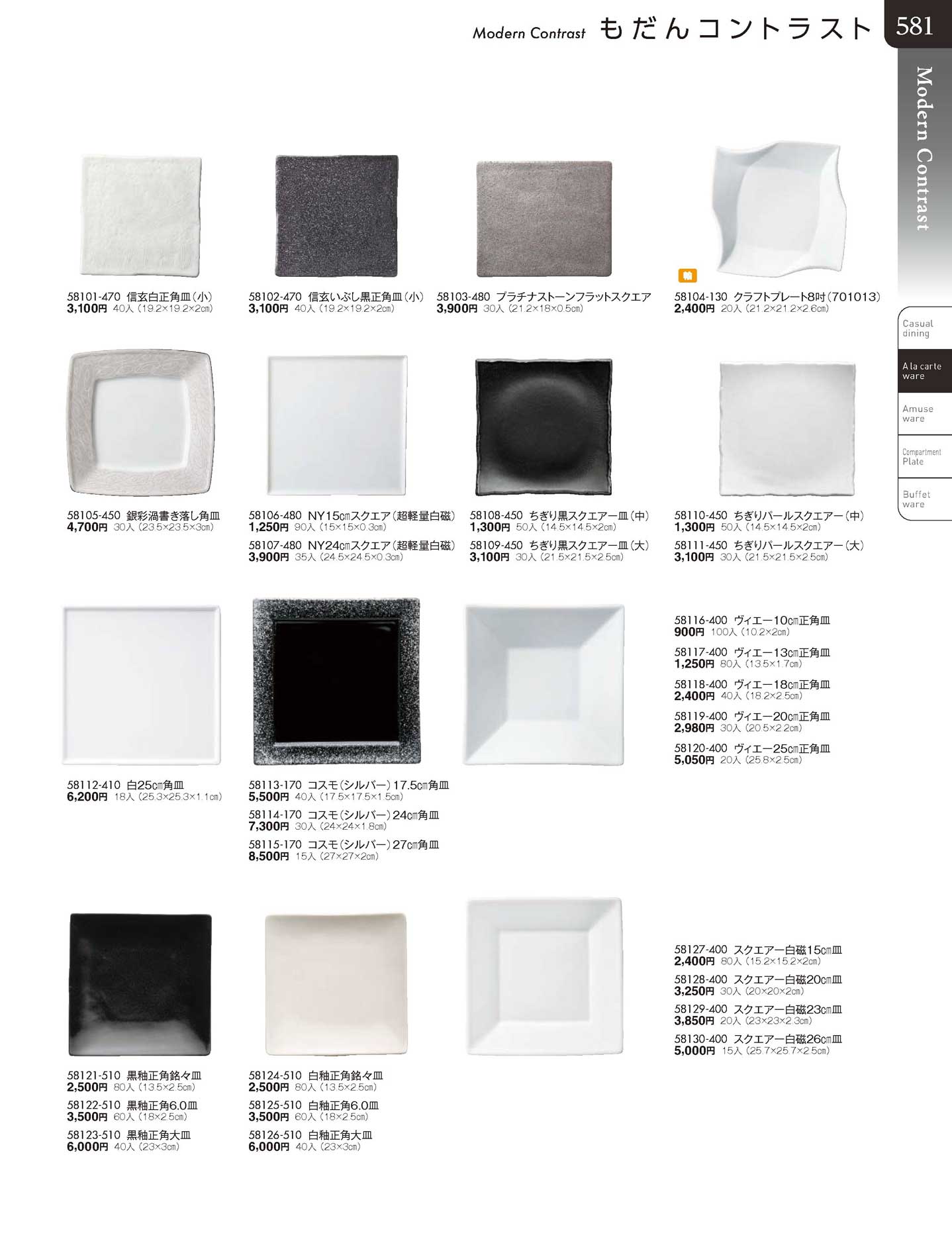 スクエアー白磁15cm皿(商品番号58127-400)