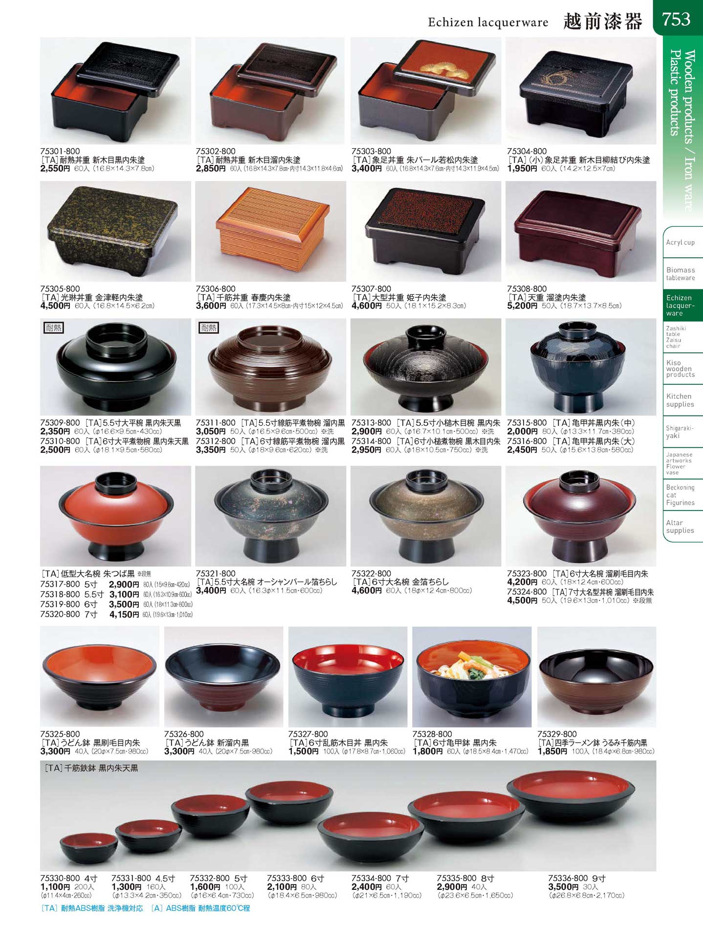 [TA]千筋丼重 春慶内朱塗