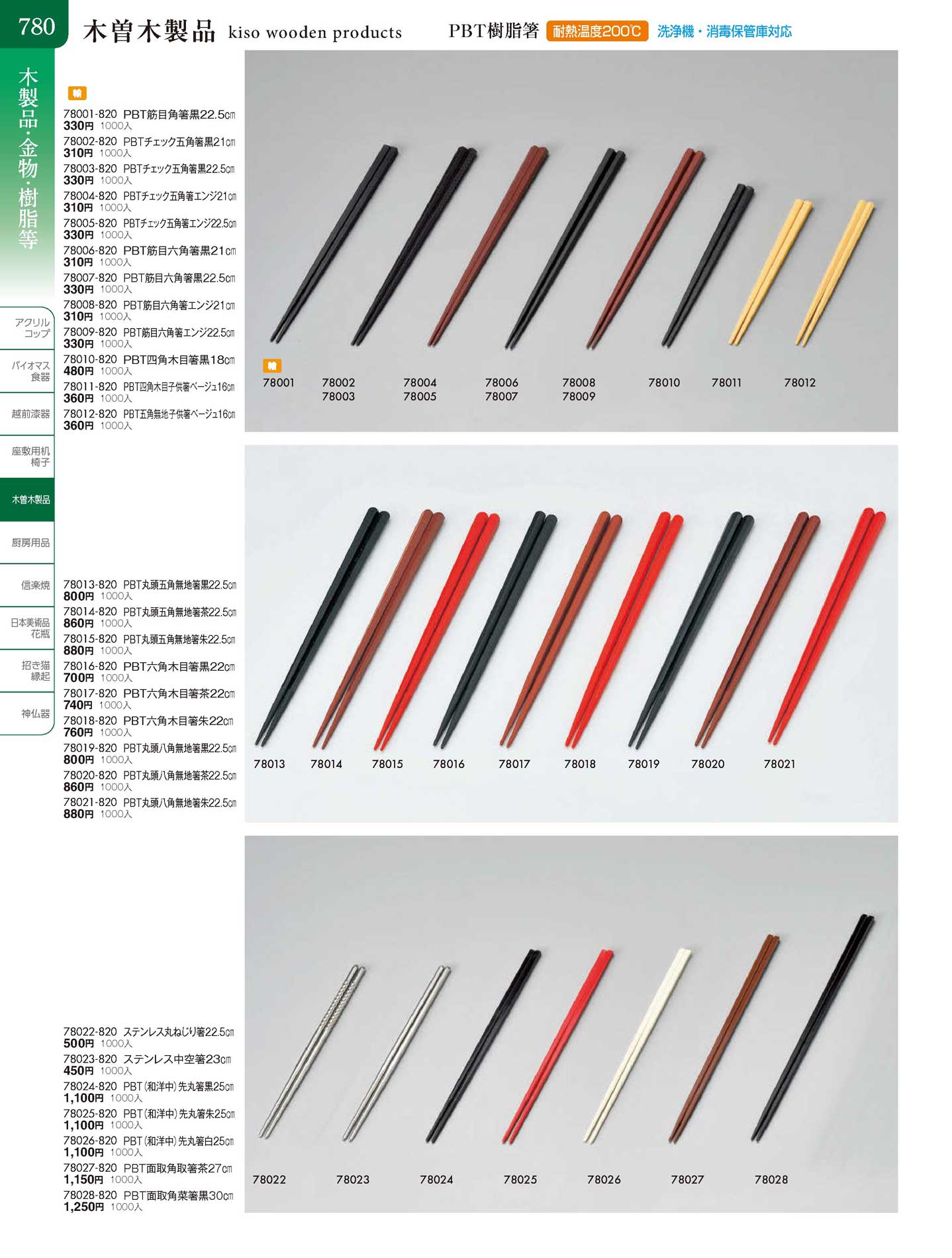 PBT六角木目箸茶22cm