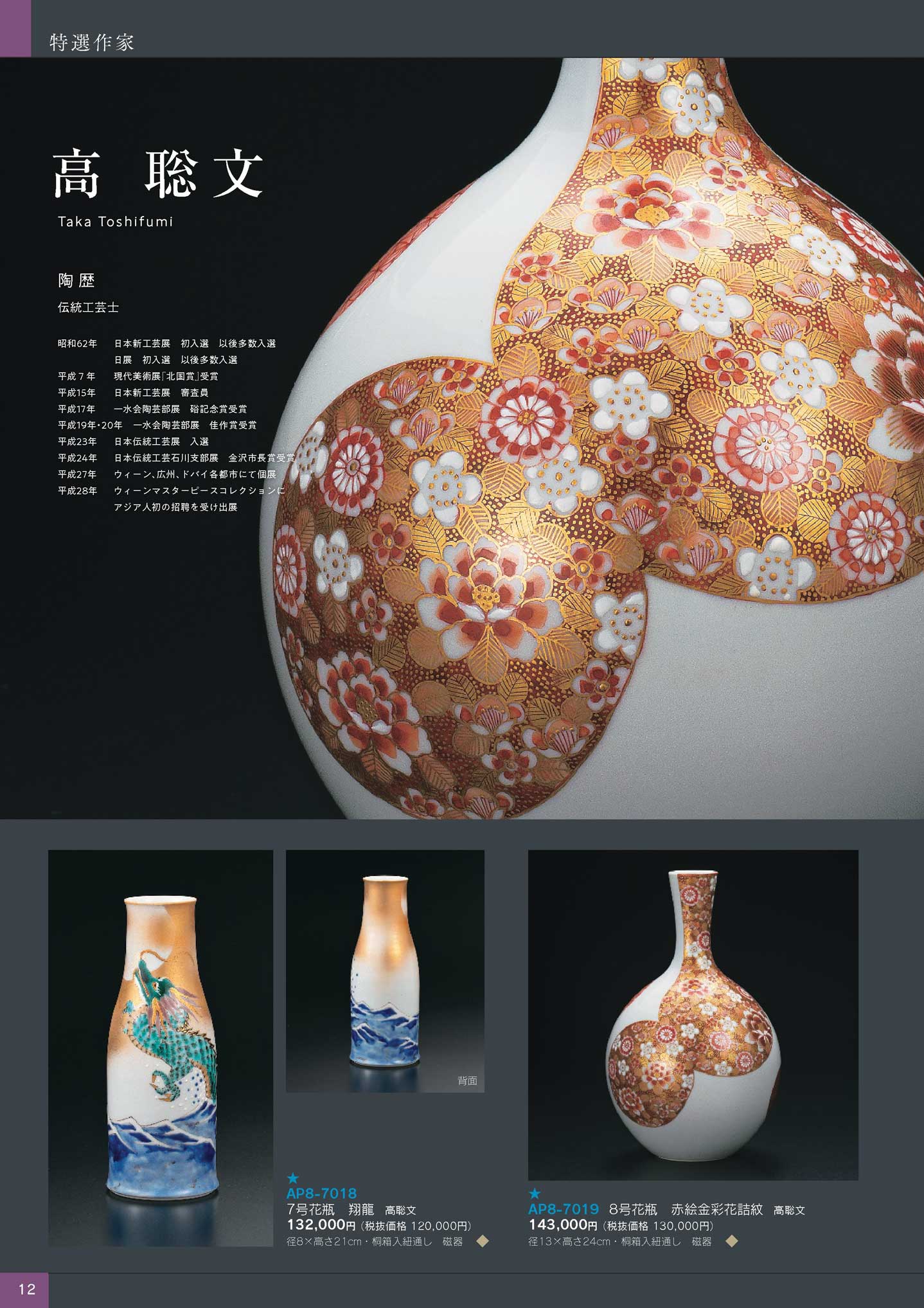 7号花瓶翔龍高聡文(上120)(商品番号AP8-7018)