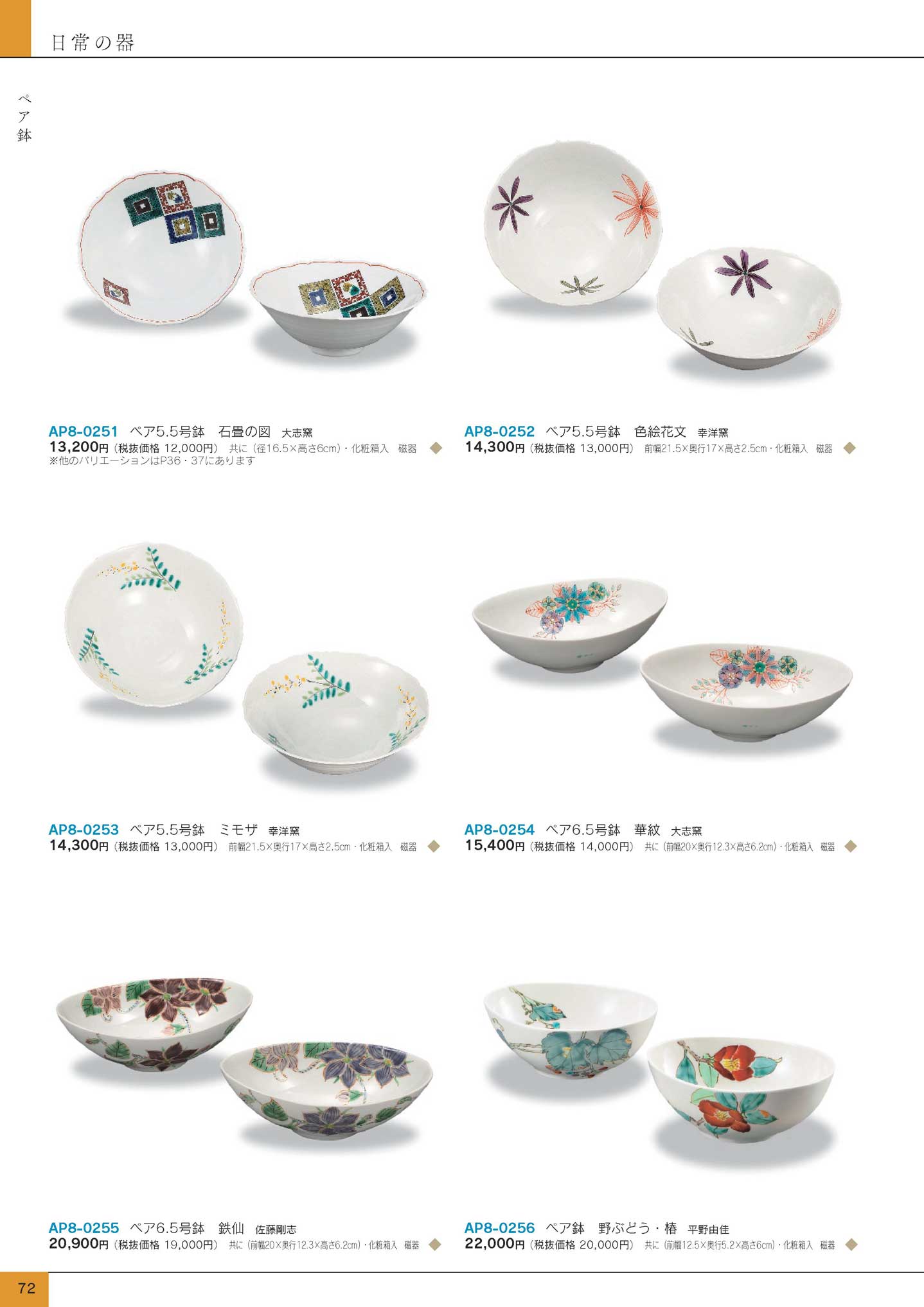 ペア6.5号鉢華紋大志窯