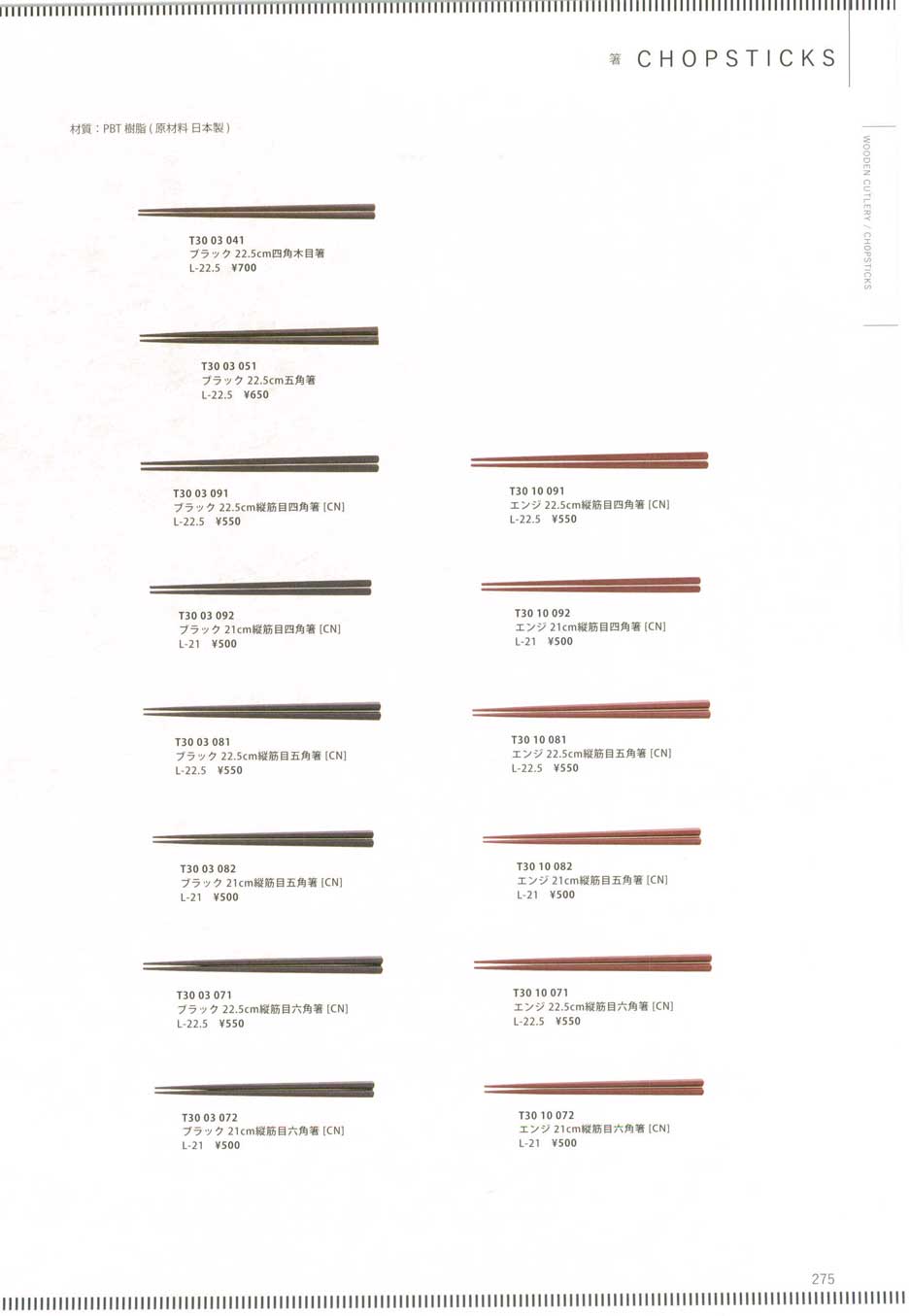 エンジ 21cm縦筋目六角箸(商品番号T3010072)