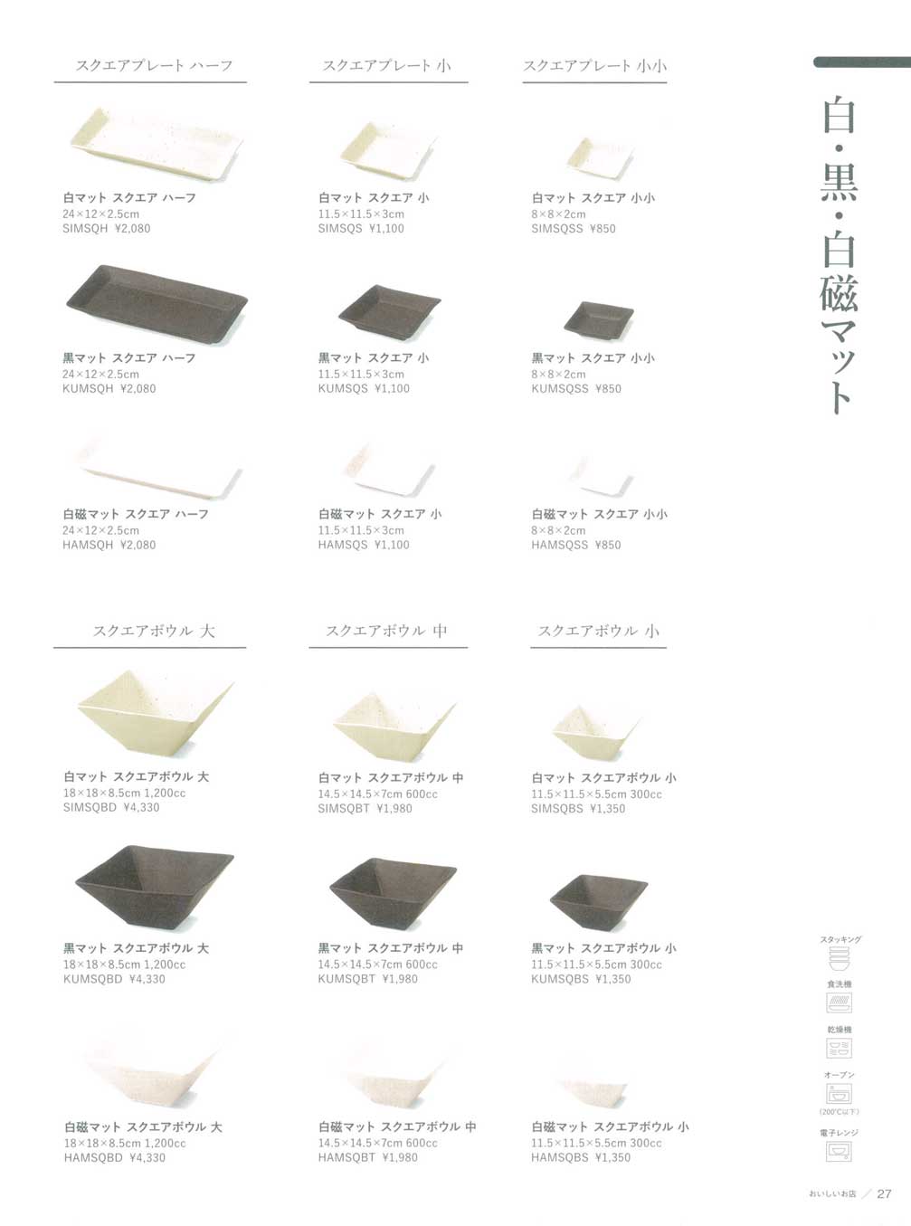 白磁マット スクエア ハーフ