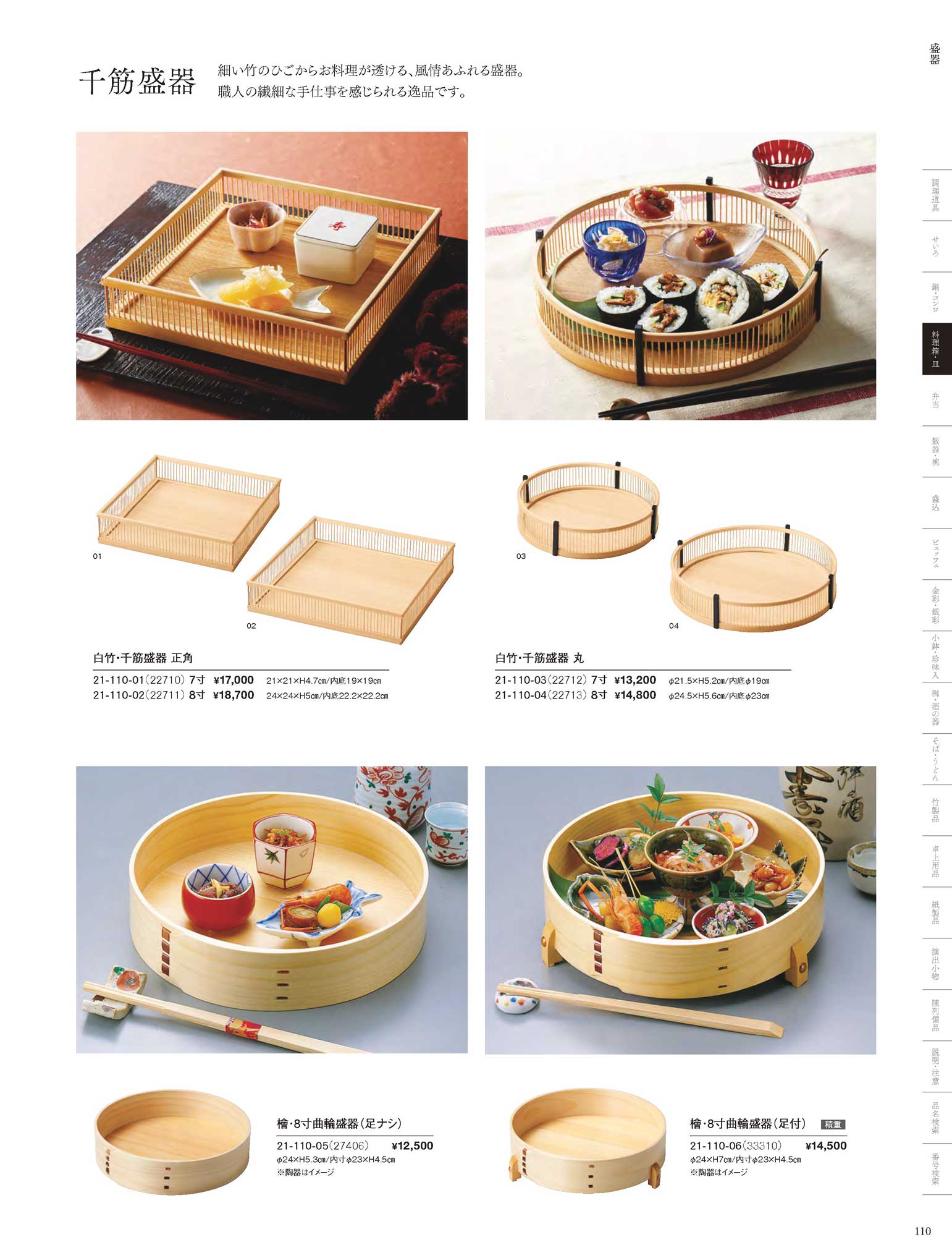 白竹千筋盛器・正角(8寸)(商品番号22711)