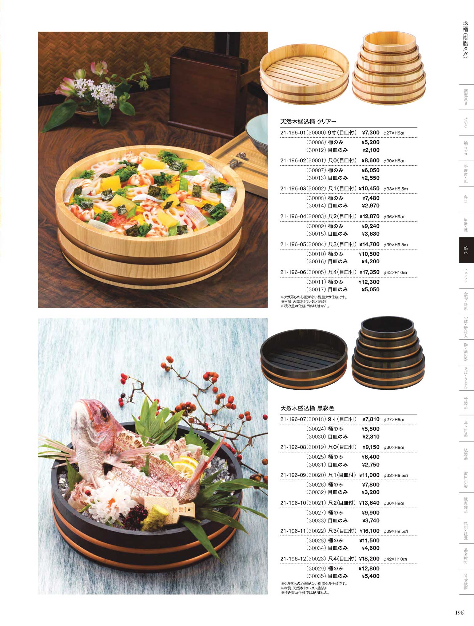 天然木盛込桶 クリアー(目皿付) 尺2(商品番号30003)
