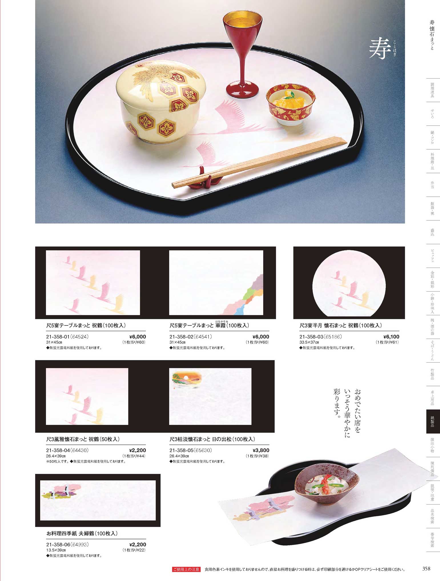 雲竜和紙 尺3宴半月懐石まっと 祝鶴 (100枚入)