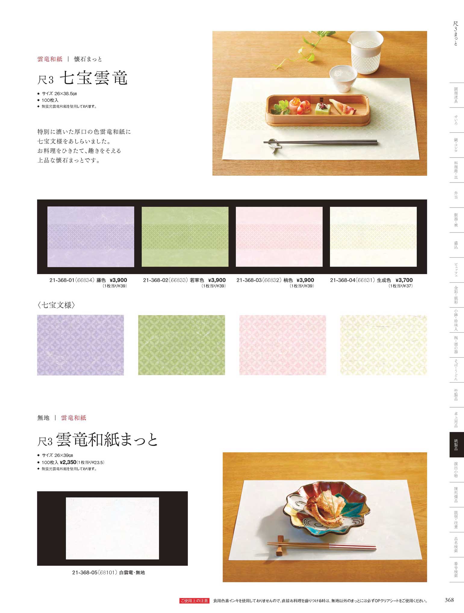 尺3七宝雲竜懐石まっと 生成色 (100枚入)
