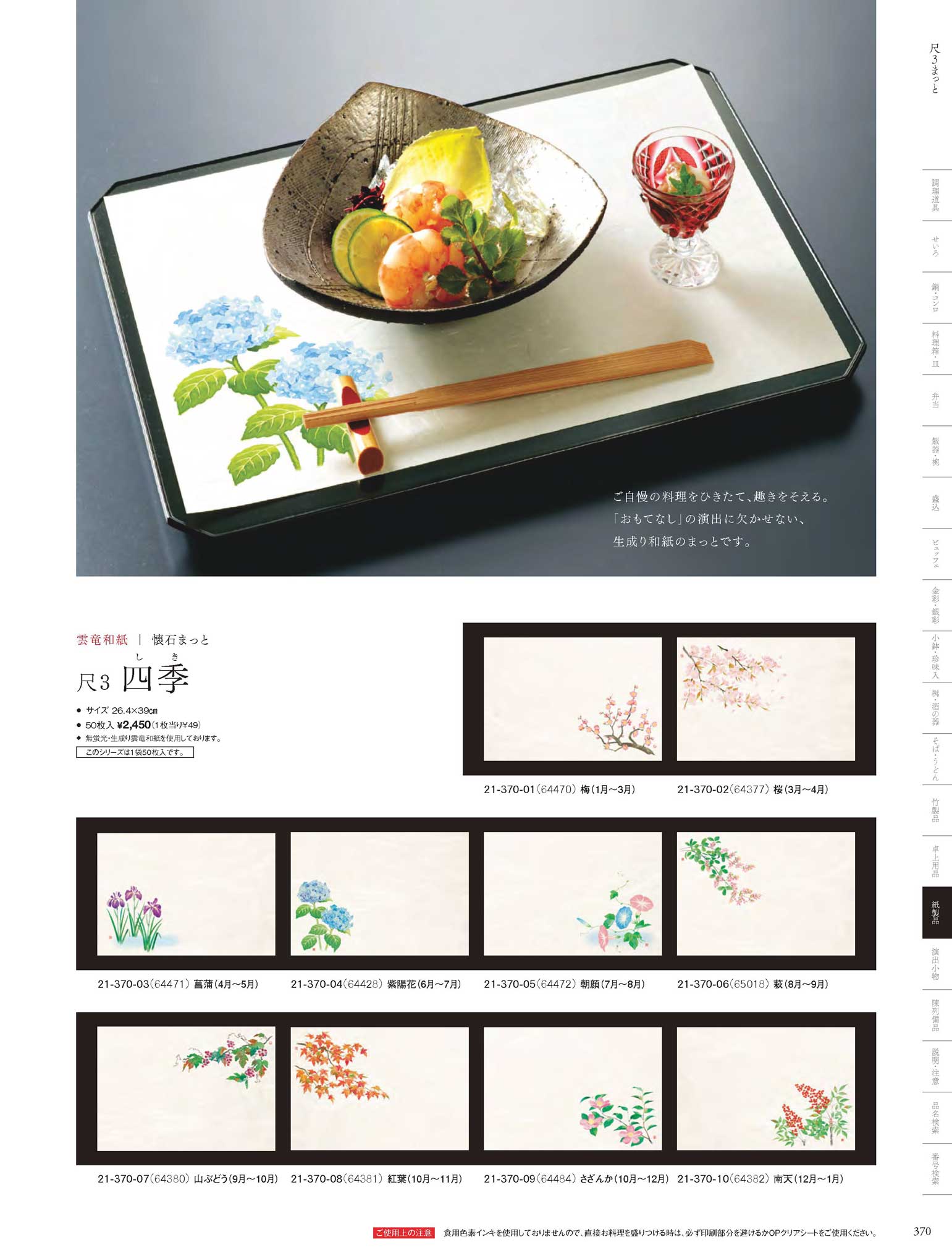 尺3雲竜和紙懐石まっと 四季 さざんか (50枚入)
