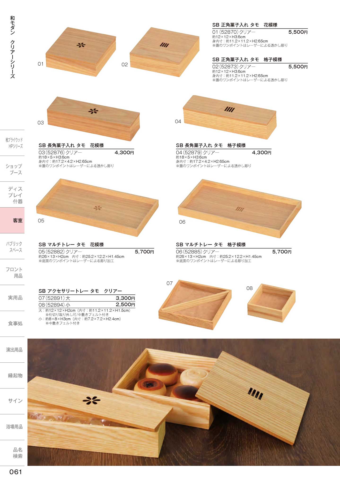 SB 正角菓子入れ タモ クリアー/花模様
