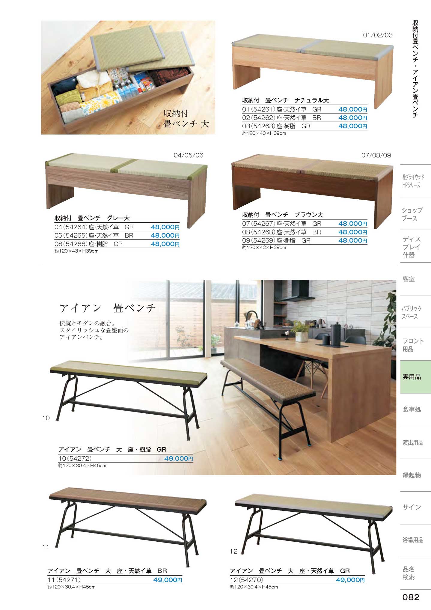 収納付 畳ベンチ ナチュラル大 座・樹脂 GR(上100) (商品番号54263)