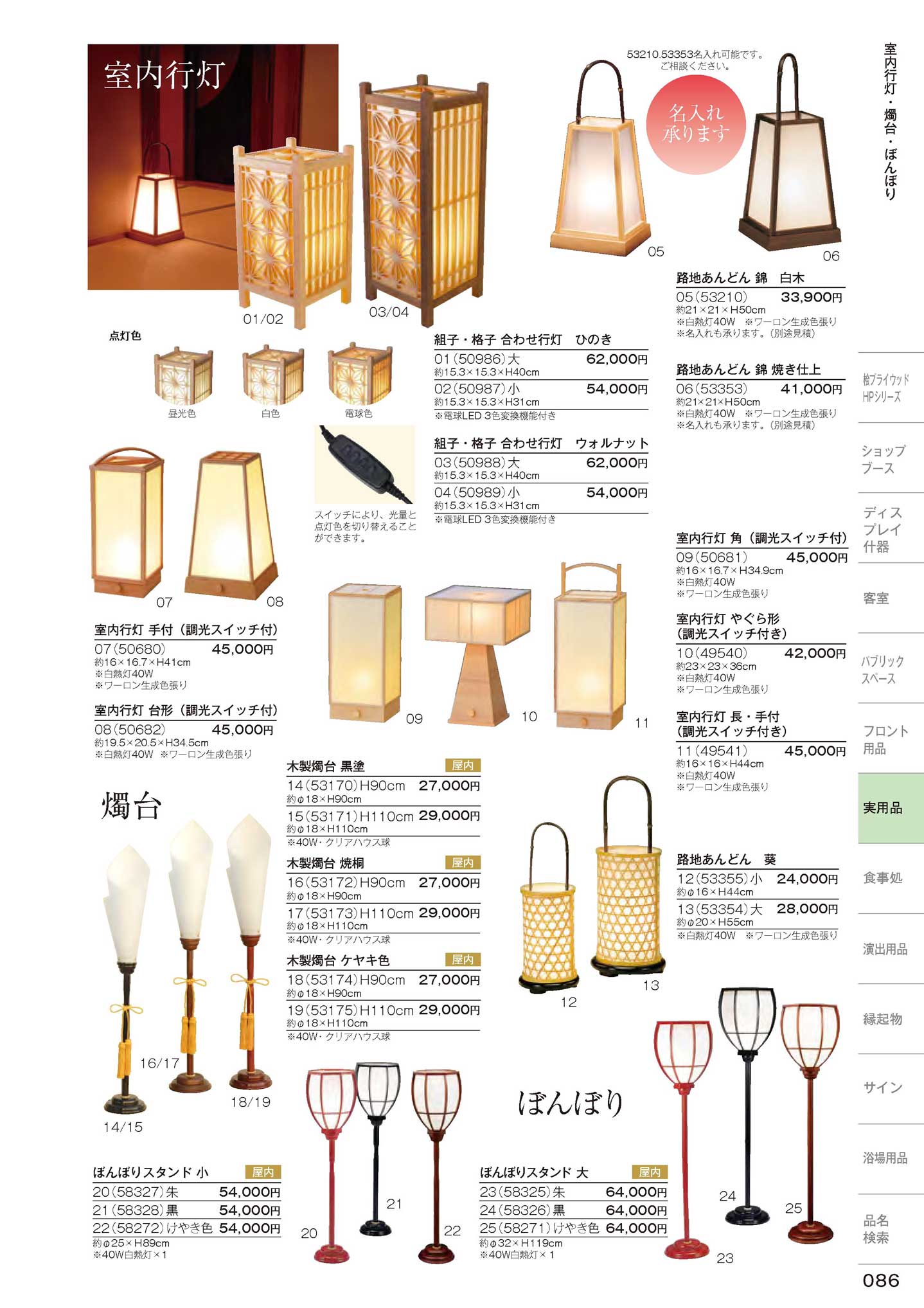 室内行灯 角(調光スイッチ付)