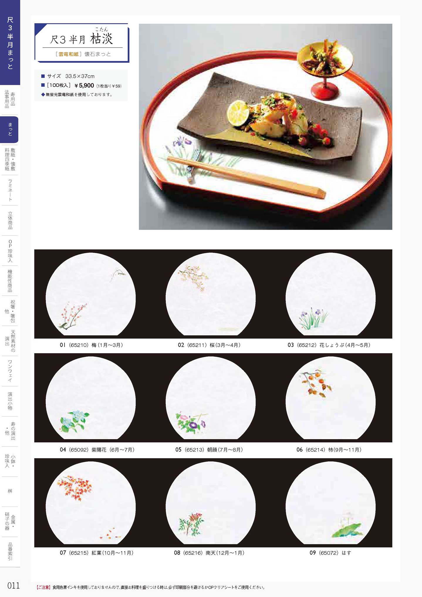 尺3半月雲竜和紙懐石まっと 枯淡 南天 (100枚入)