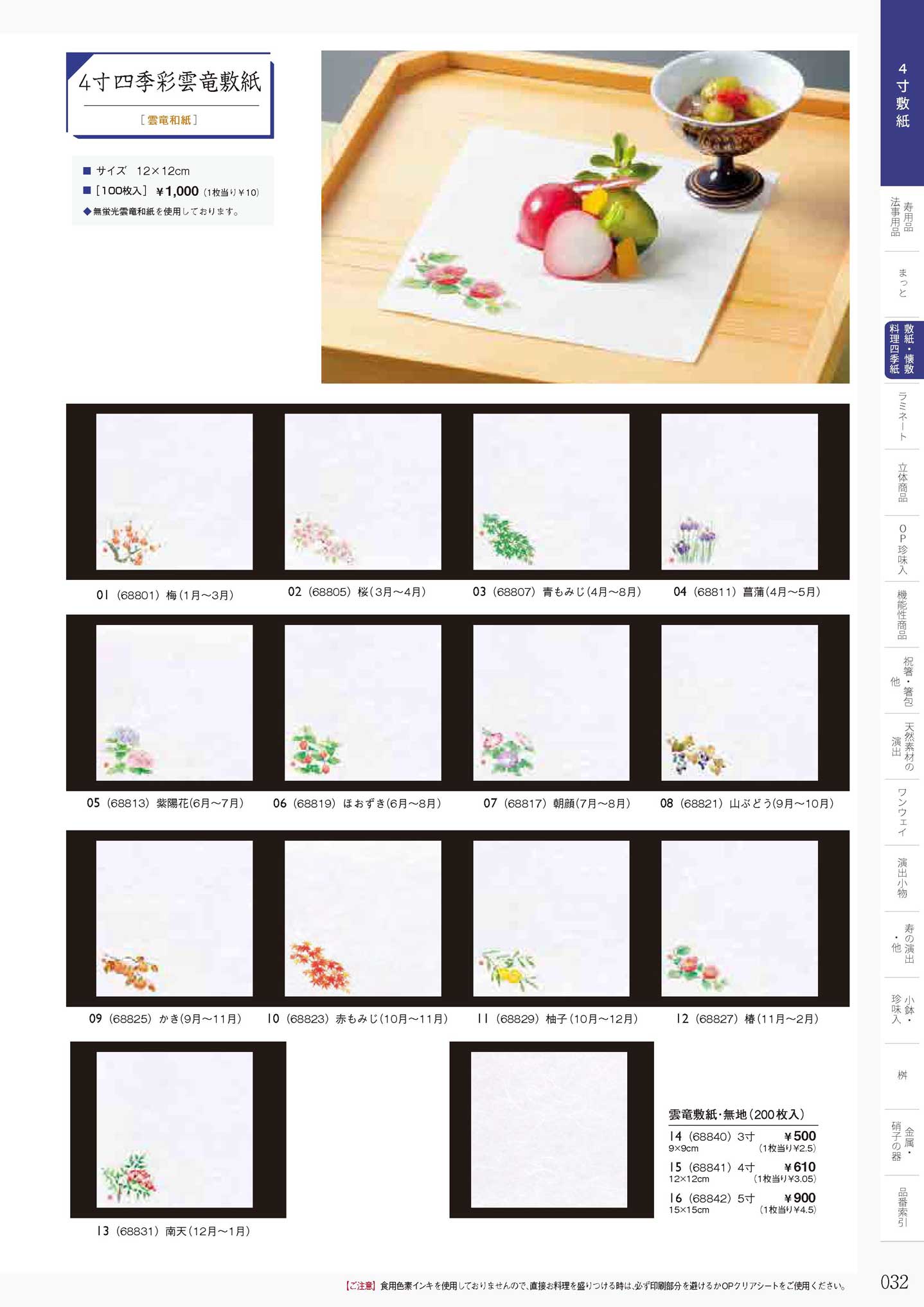 4寸四季彩雲竜敷紙 梅 (100枚入)(商品番号68801)