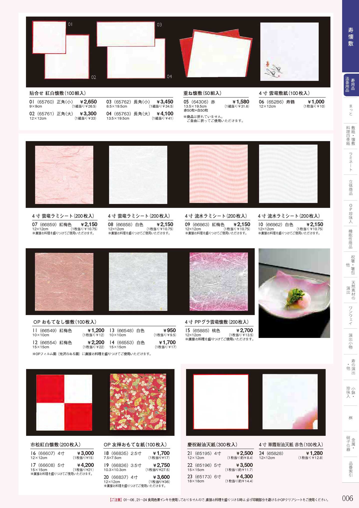 貼り合わせ 紅白懐敷 正角(小) (100組入)