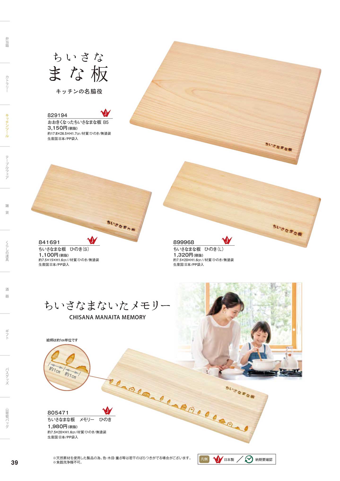 ちいさなまな板ひのき メモリー