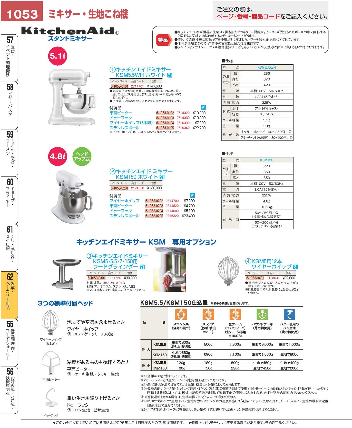 キッチンエイドミキサー KSM150WHN ホワイト(130)