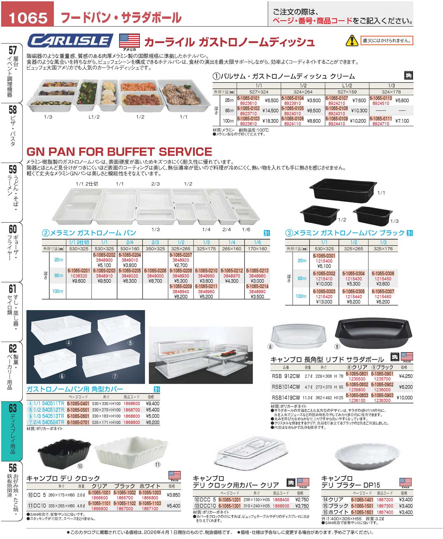 カーライル バルサム・ガストロノームディッシュ 1/1 65mm 55522(90)