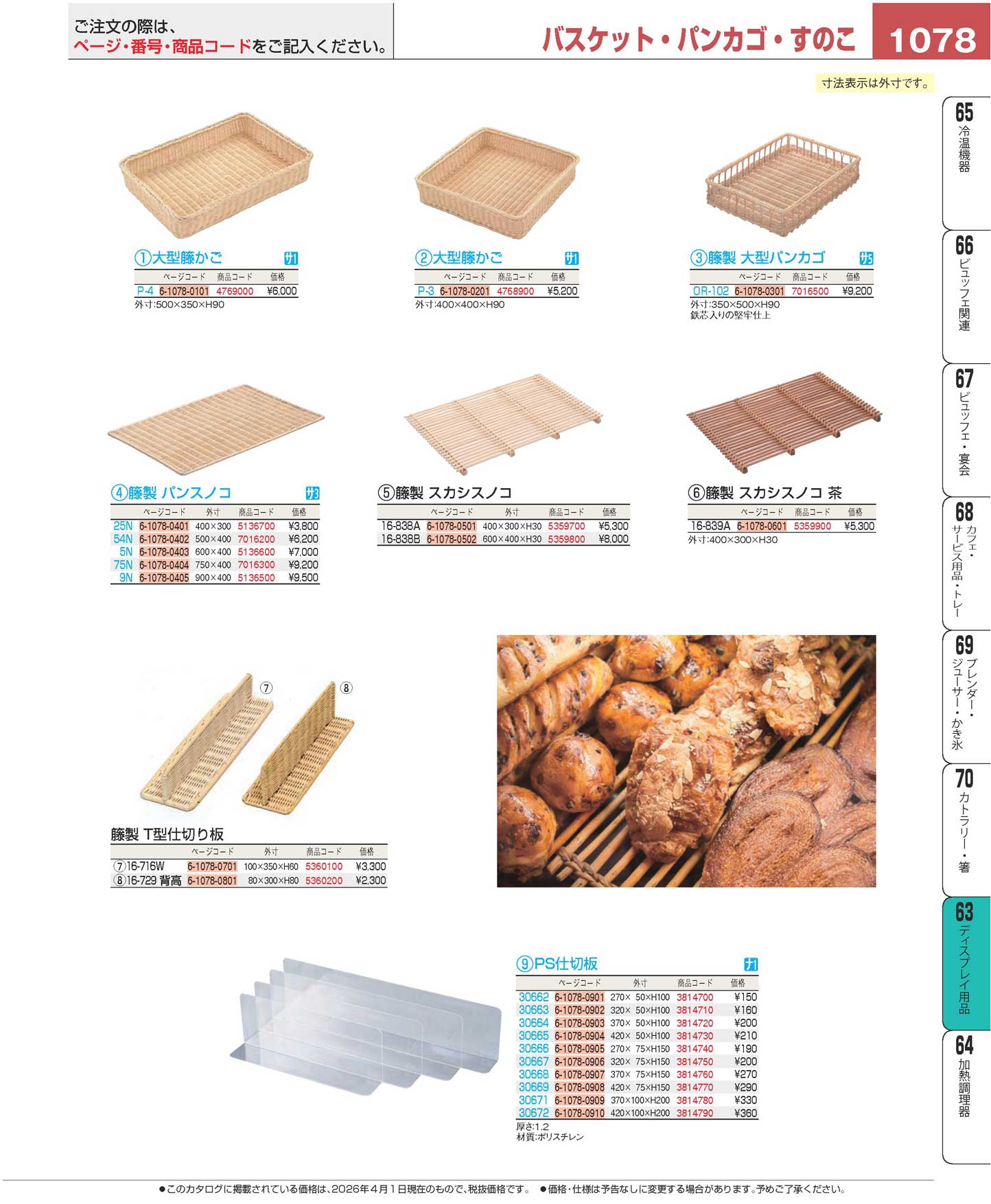 籐製 T型仕切り板 背高 16-729(90)