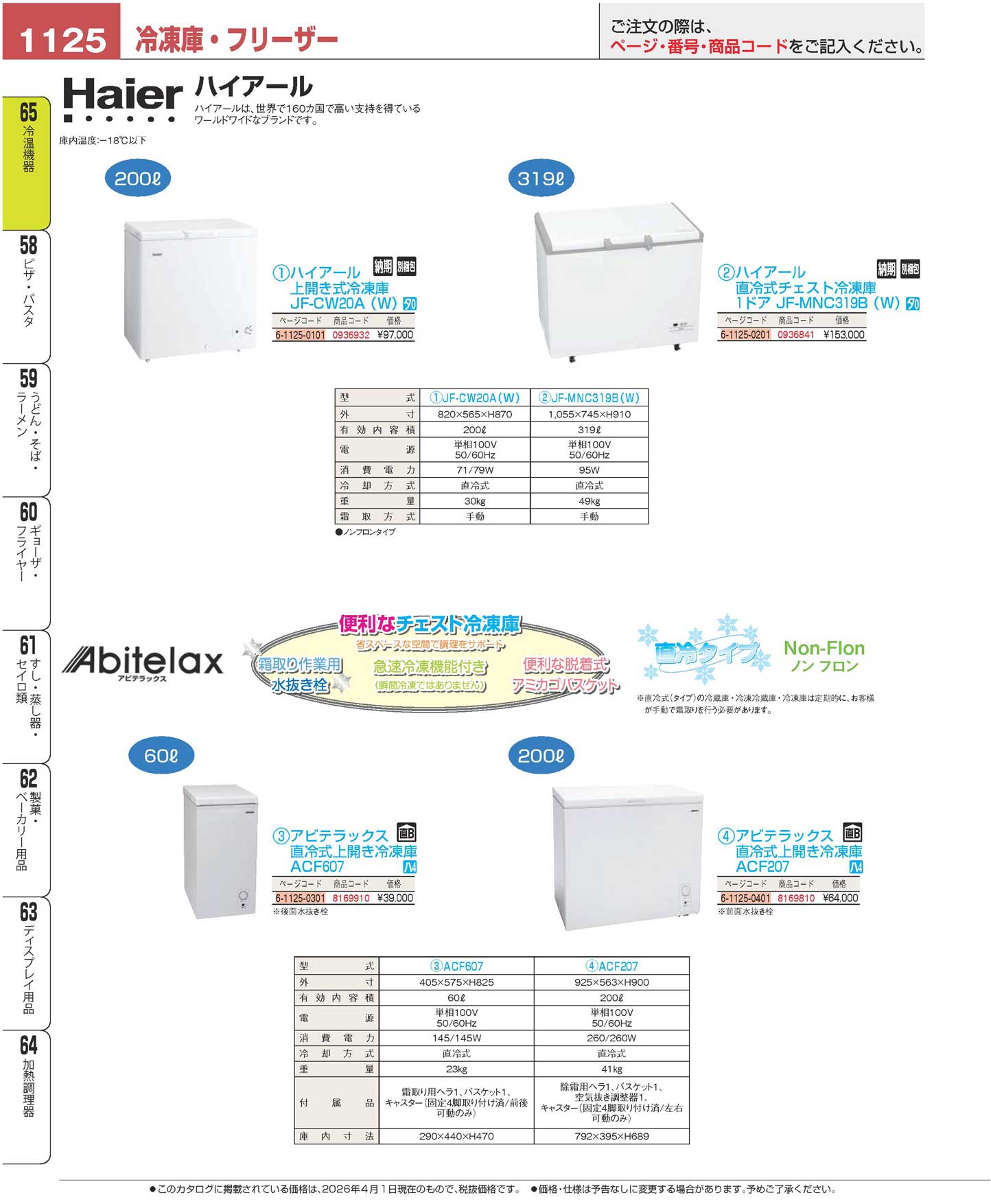 アビテラックス 直冷式上開き冷凍庫 ACF607(150)