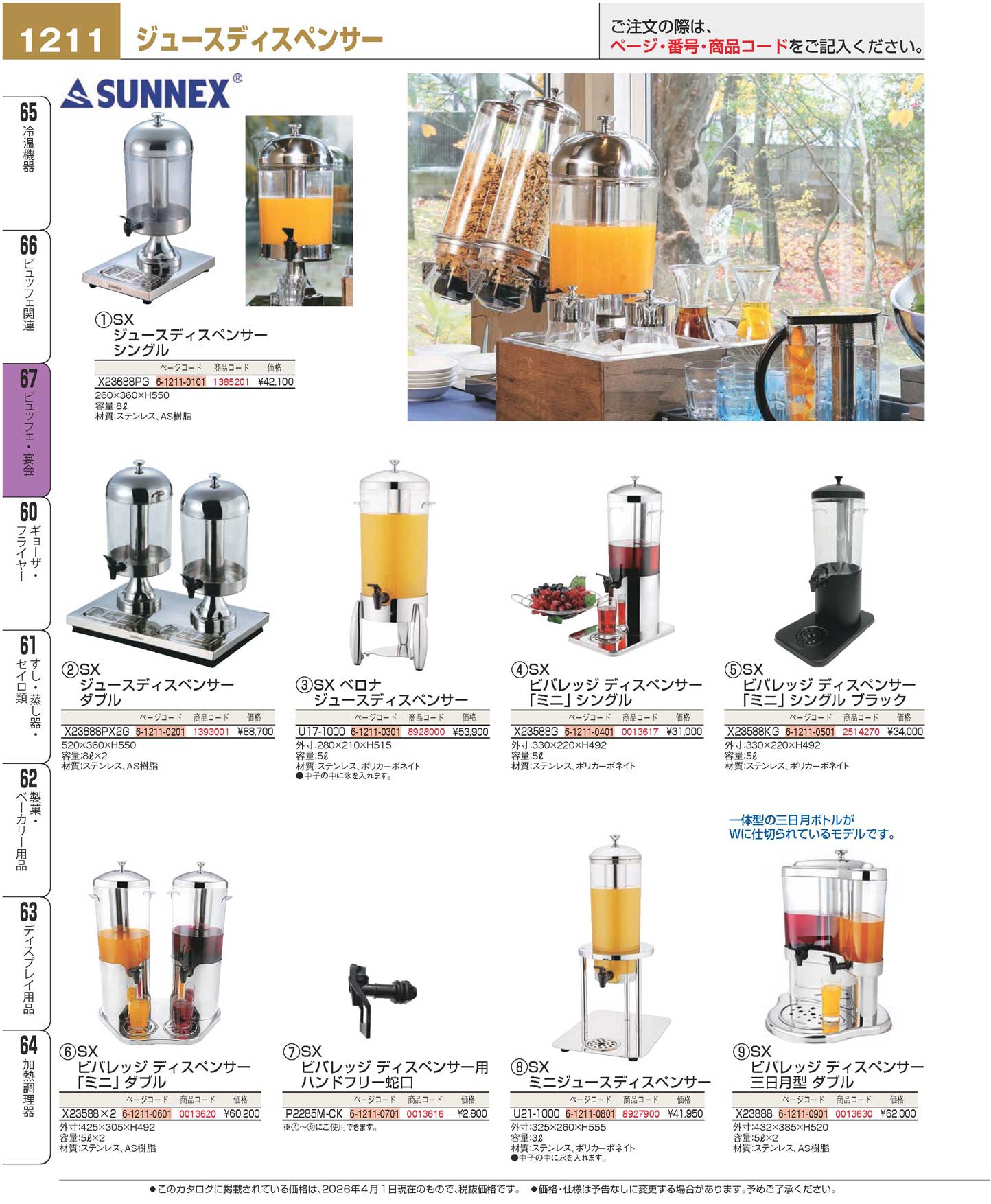 SX ビバレッジディスペンサー 三日月型ダブル X23888(90)