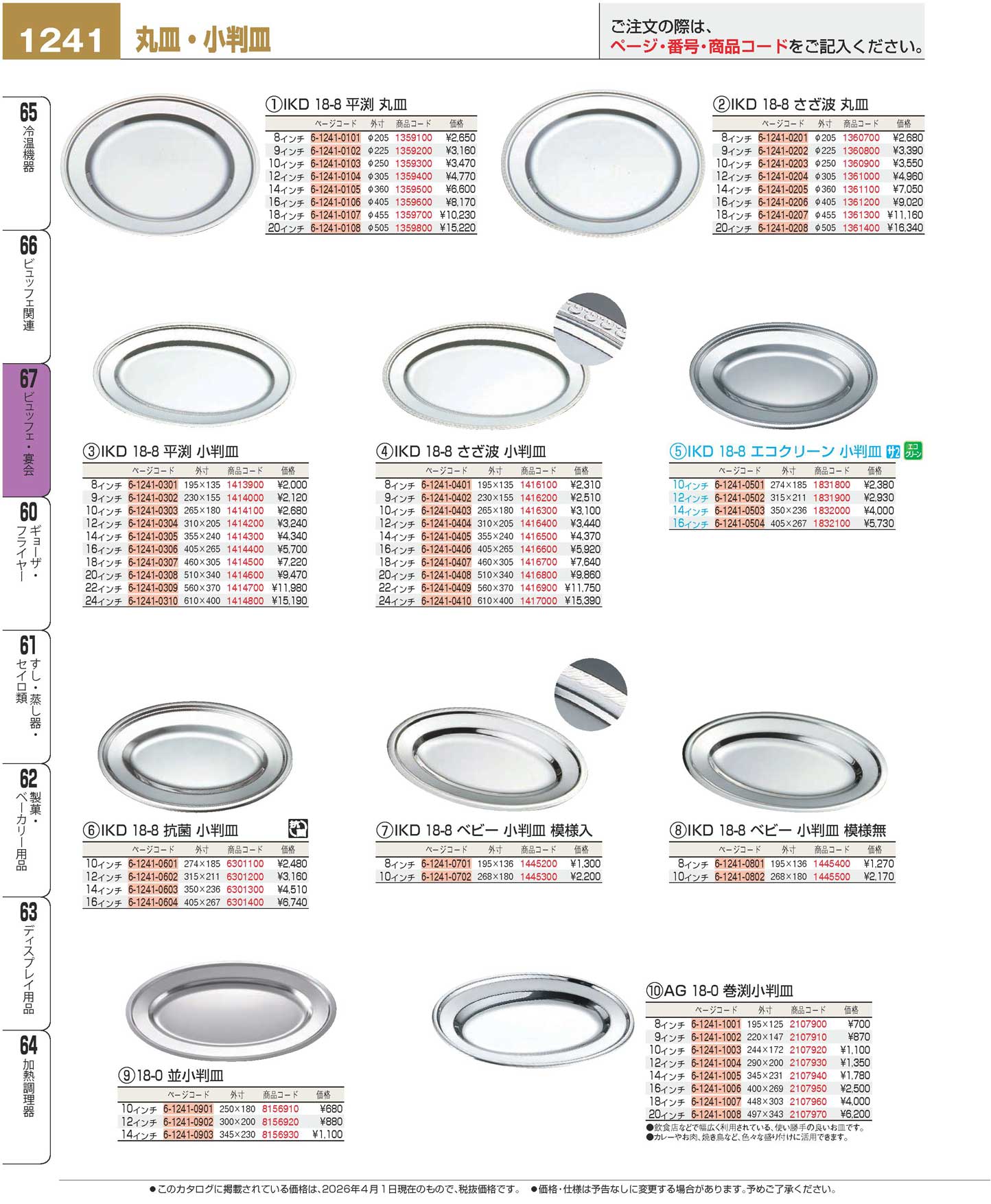 IKD 18-8 平渕 丸皿 8インチ(90)