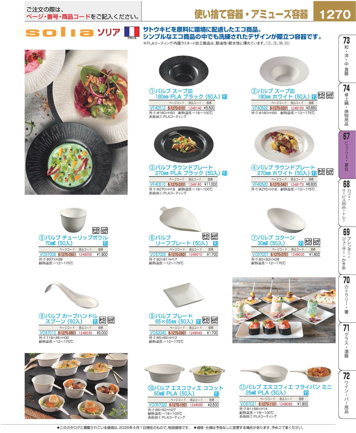 ソリア パルプ ラウンドプレート 270mm ホワイト(50入)VF40520(130)