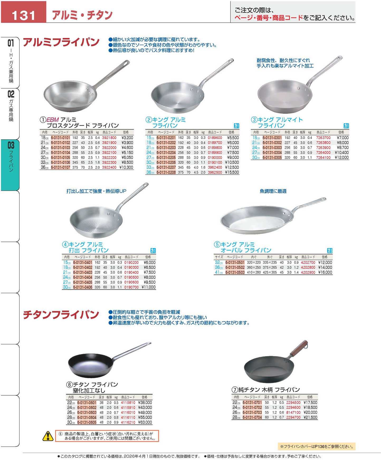 チタン フライパン 26cm 窒化加工なし(90)