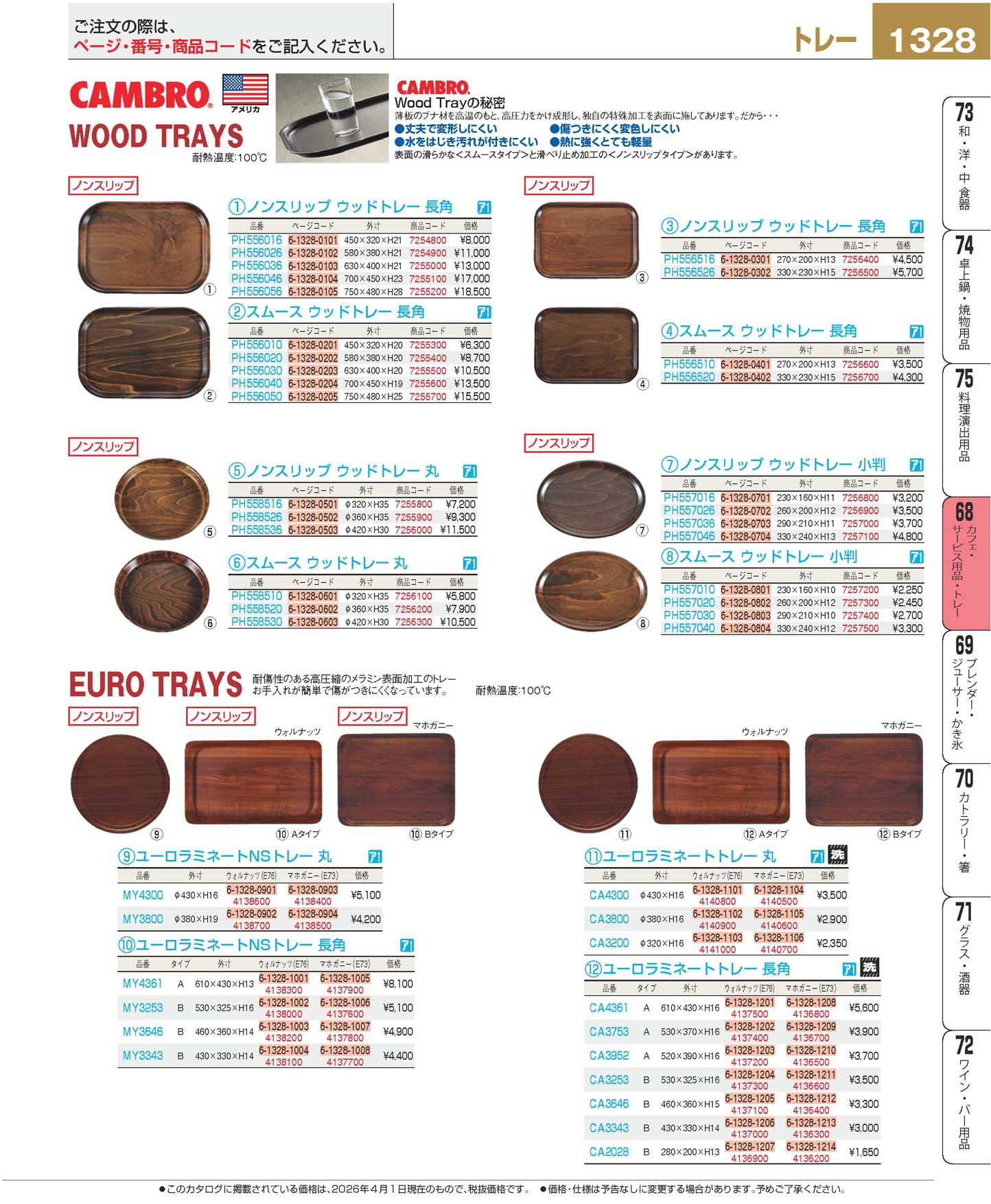 ユーロラミネートNSトレー 長角 MY4361E73 マホガニー(100)