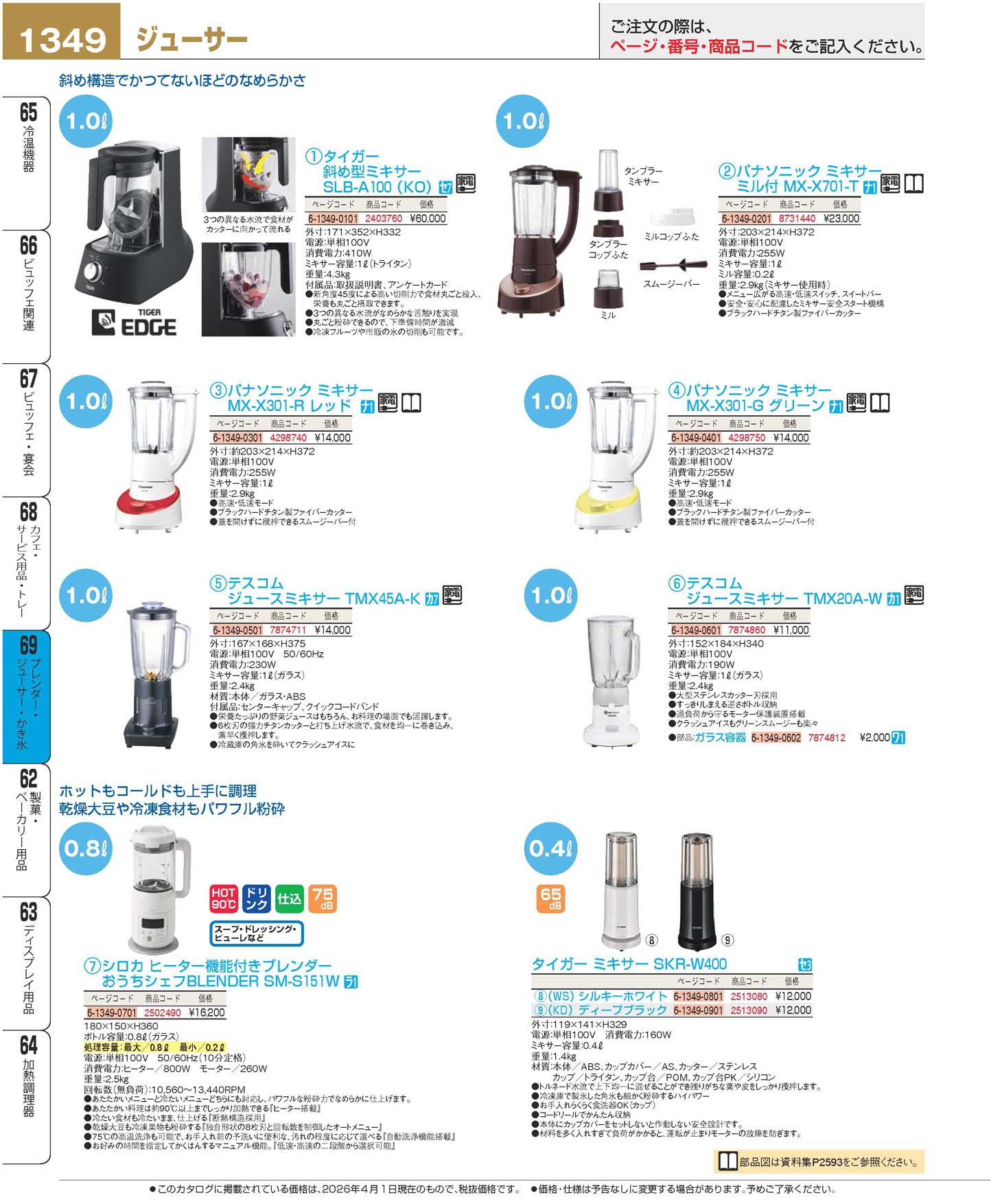 タイガー 斜め型ミキサー SLB-A100(KO)(126)(商品番号2403760)