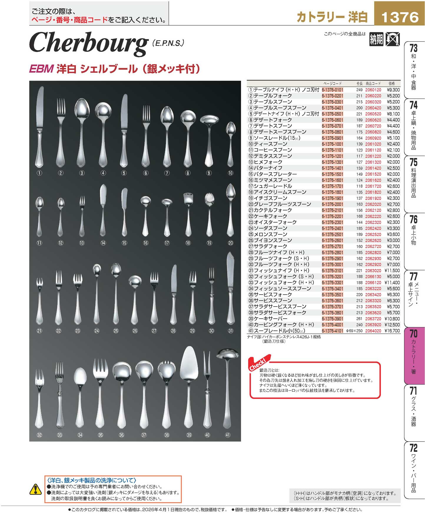 EBM 洋白 シェルブール(銀メッキ付)サラダフォーク(90)
