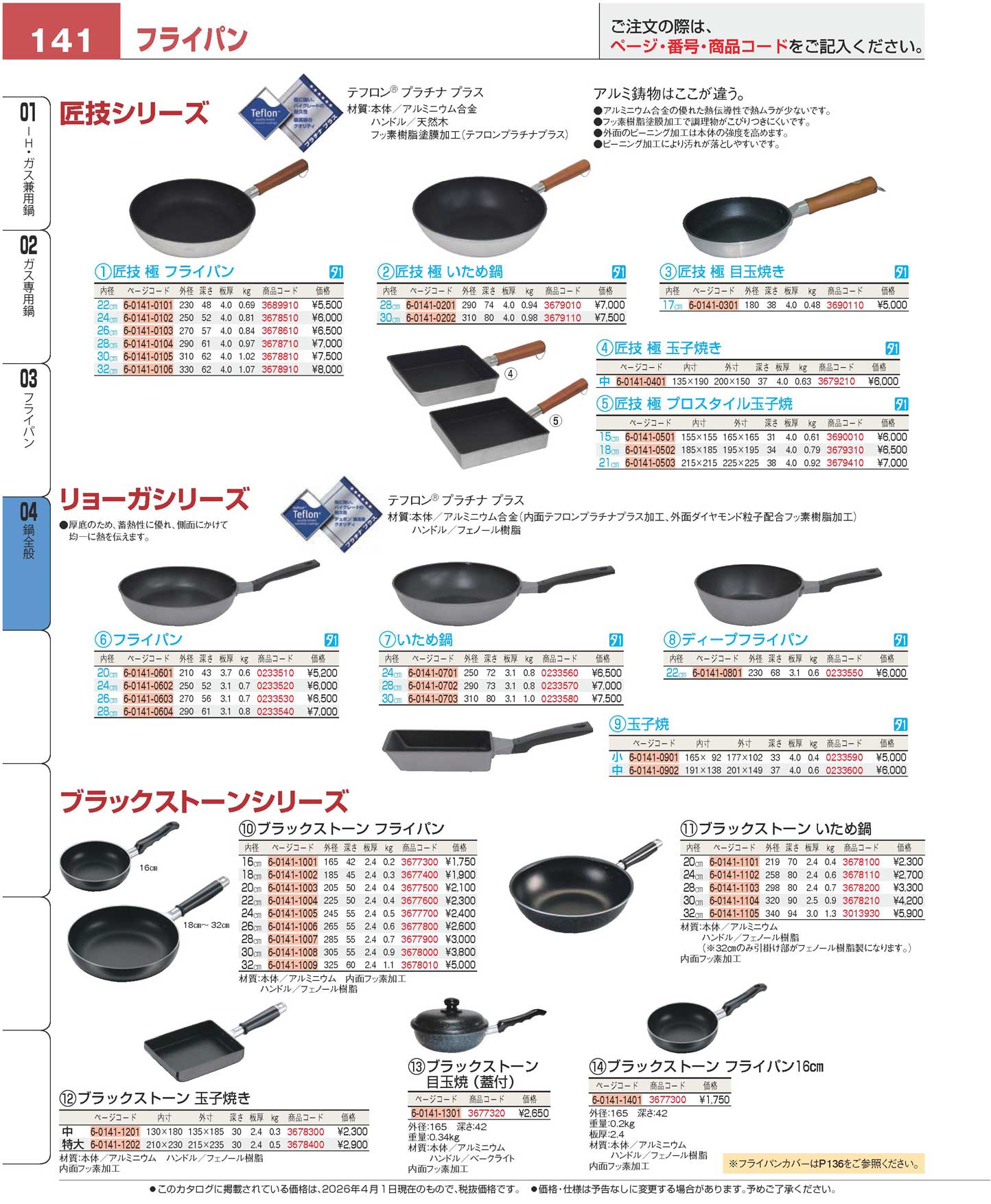 リョーガ フライパン 26cm(130)(商品番号0233530)