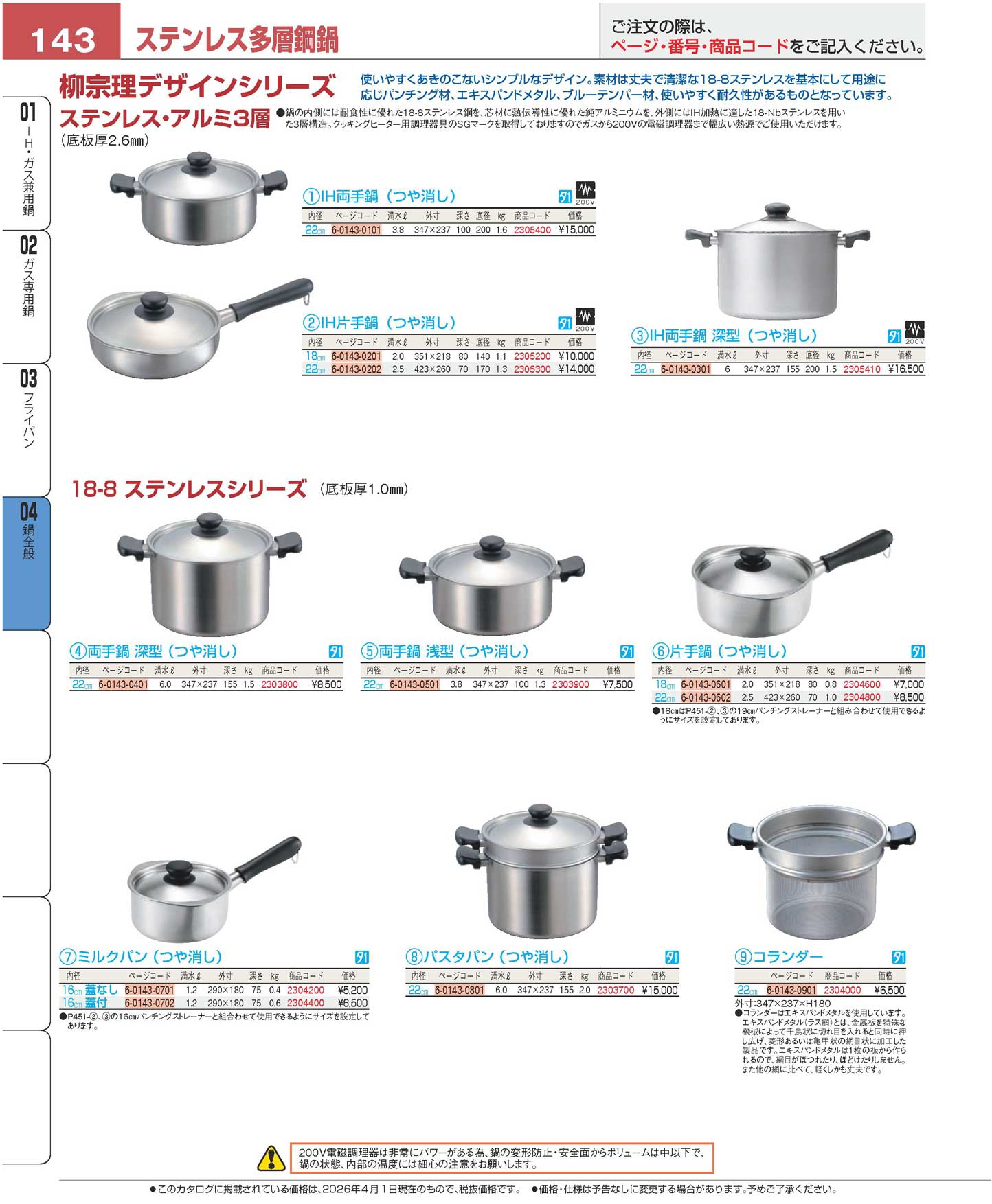 柳宗理 18-8 パスタパン(つや消し)22cm(12150601-1270)(130)