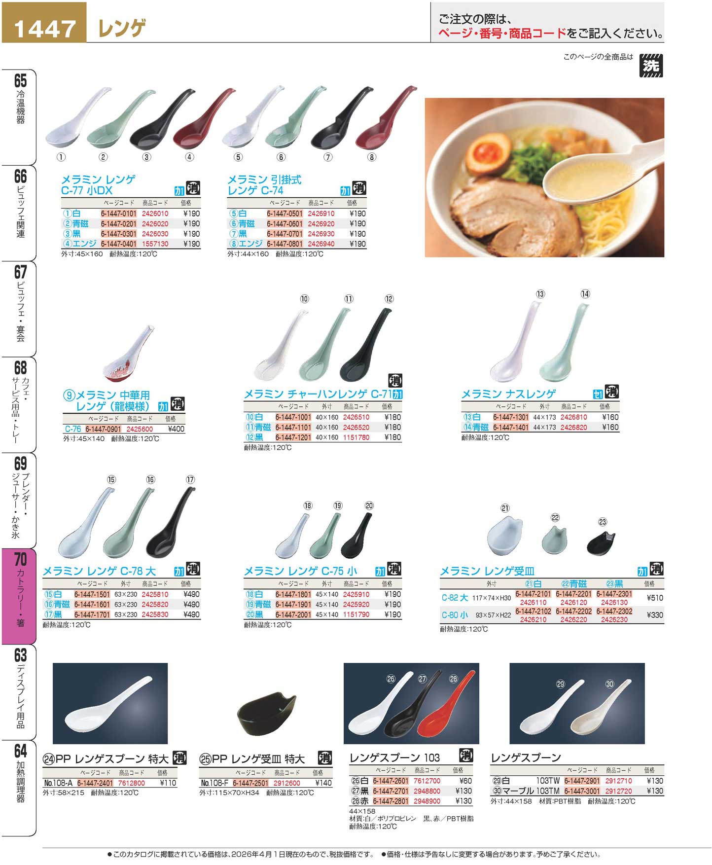 メラミン ラーメンレンゲスプーン 引掛式 エンジ C-74(110)
