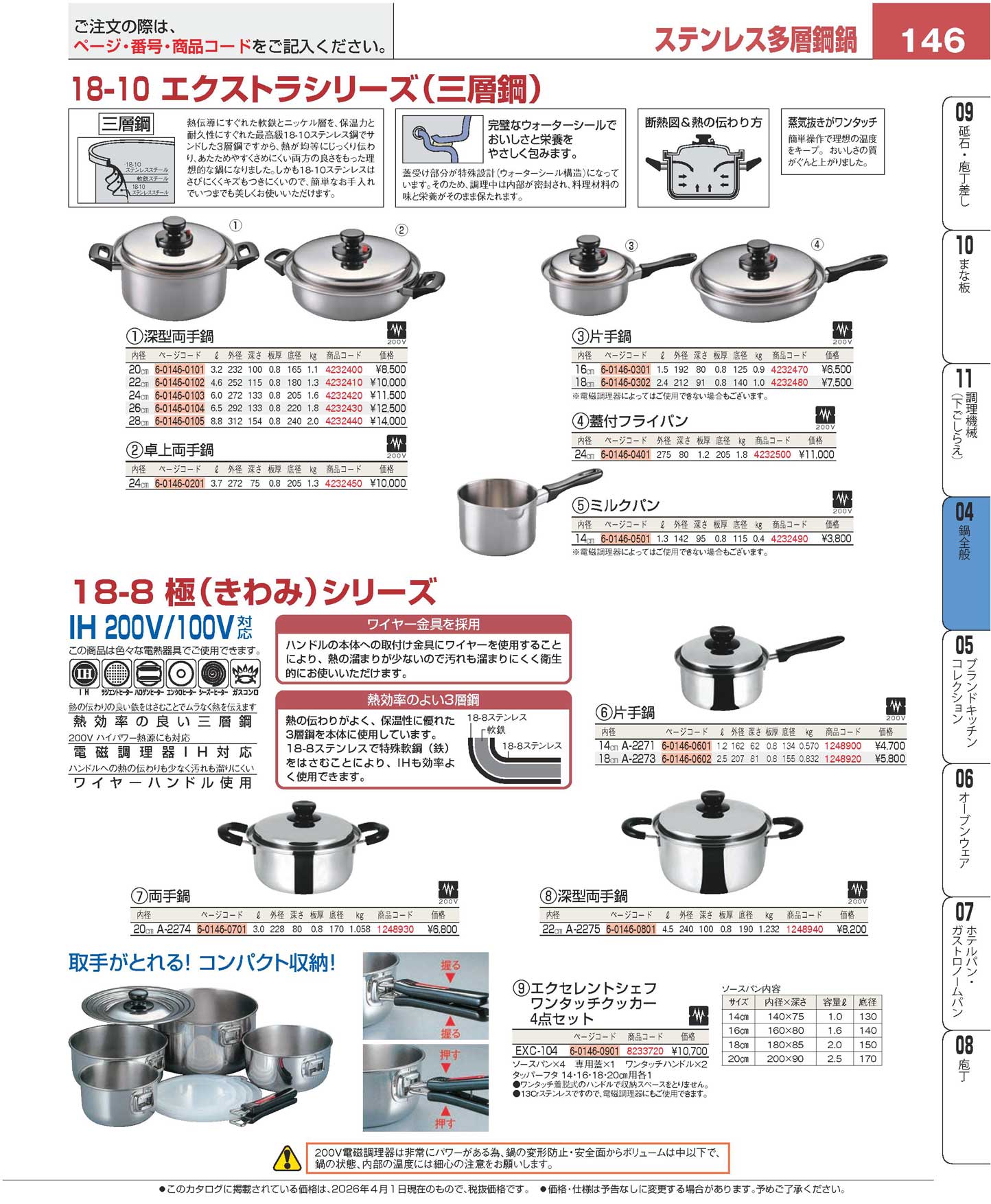 18-10(電磁対応)エクストラ 深型両手鍋 26cm(90)