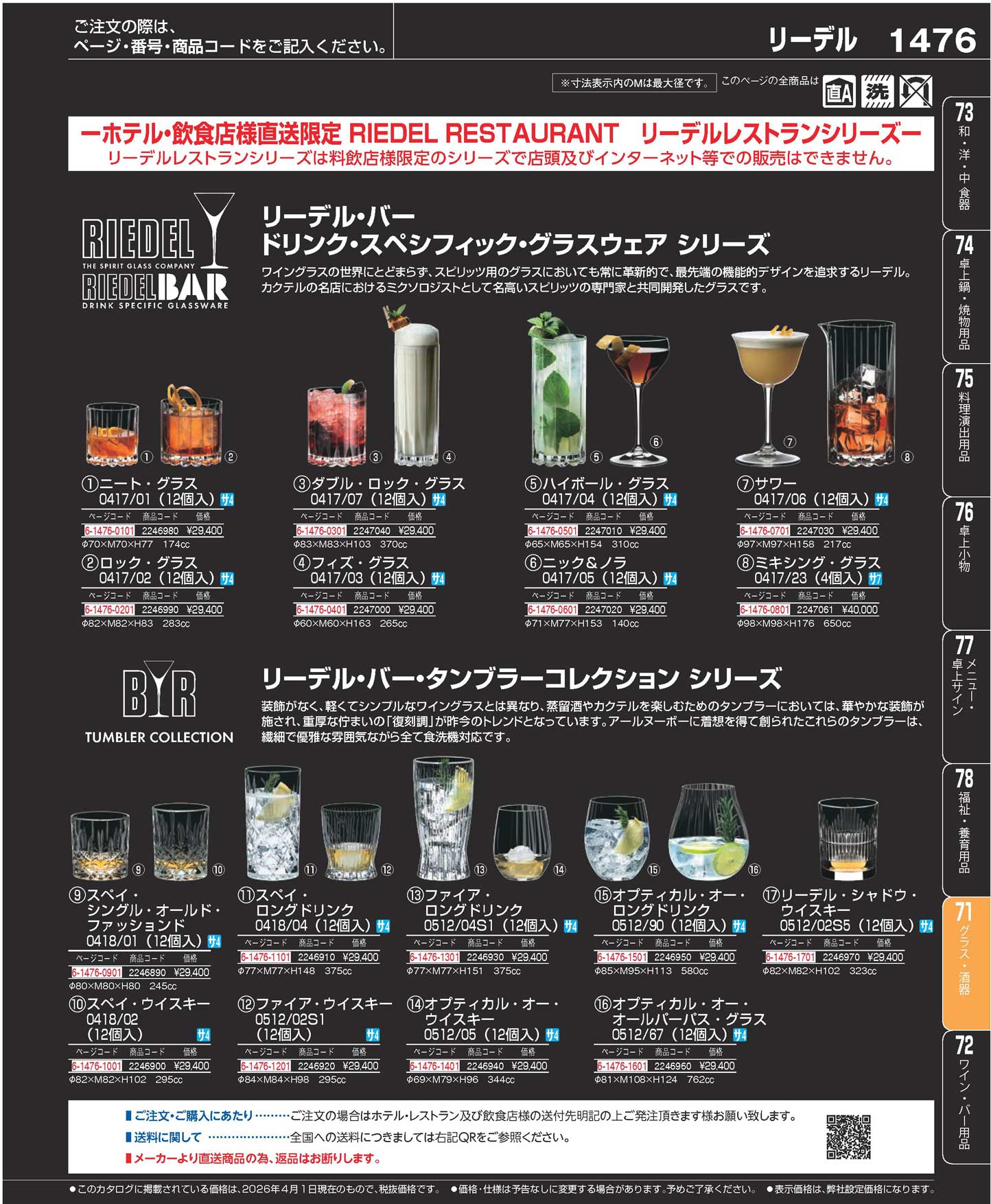 リーデル・バー・ドリンク・スペシフィック ダブルロック・グラス 0417/07 (12個入)(120)