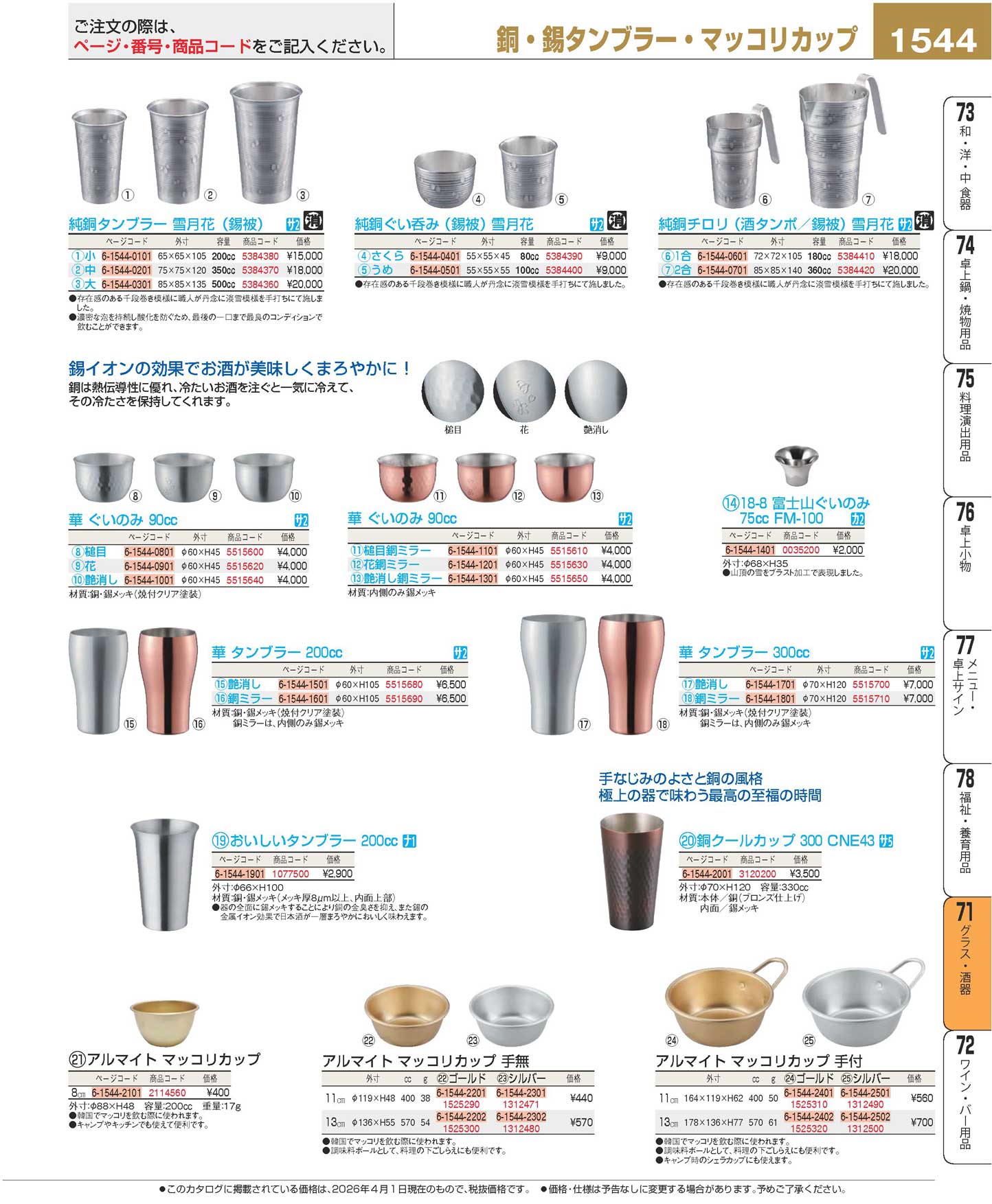 純銅タンブラー 雪月花(錫被)小 CF-61-1SN(120)