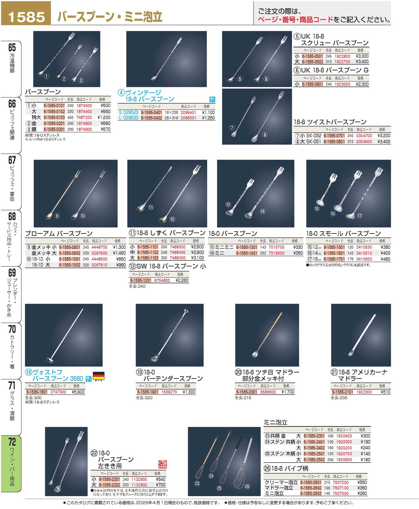 18-8 パイプ柄 クリーマー泡立 全長215(90)
