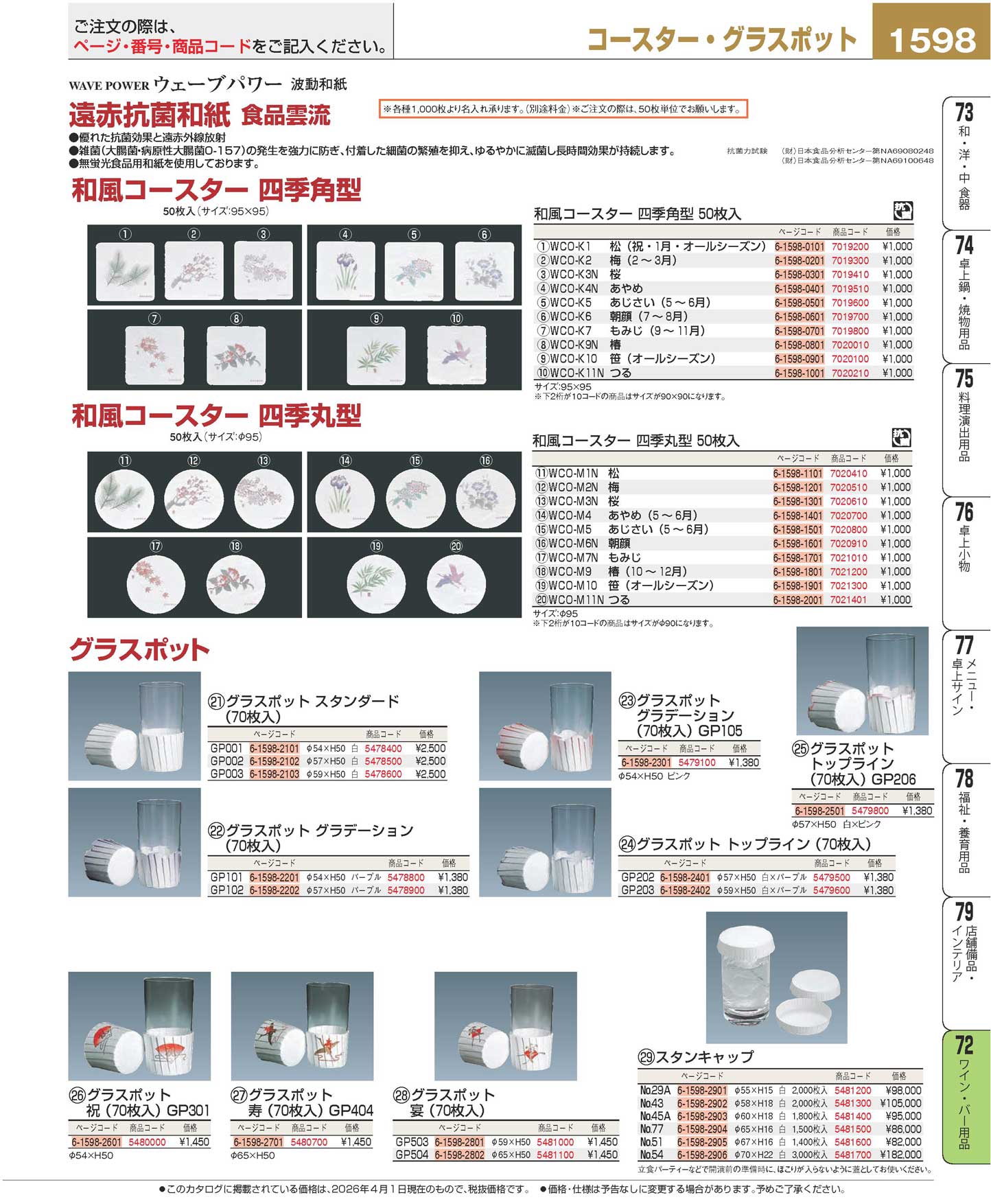 和風コースター 四季 丸型(50枚入)WCO-M10 笹(90)