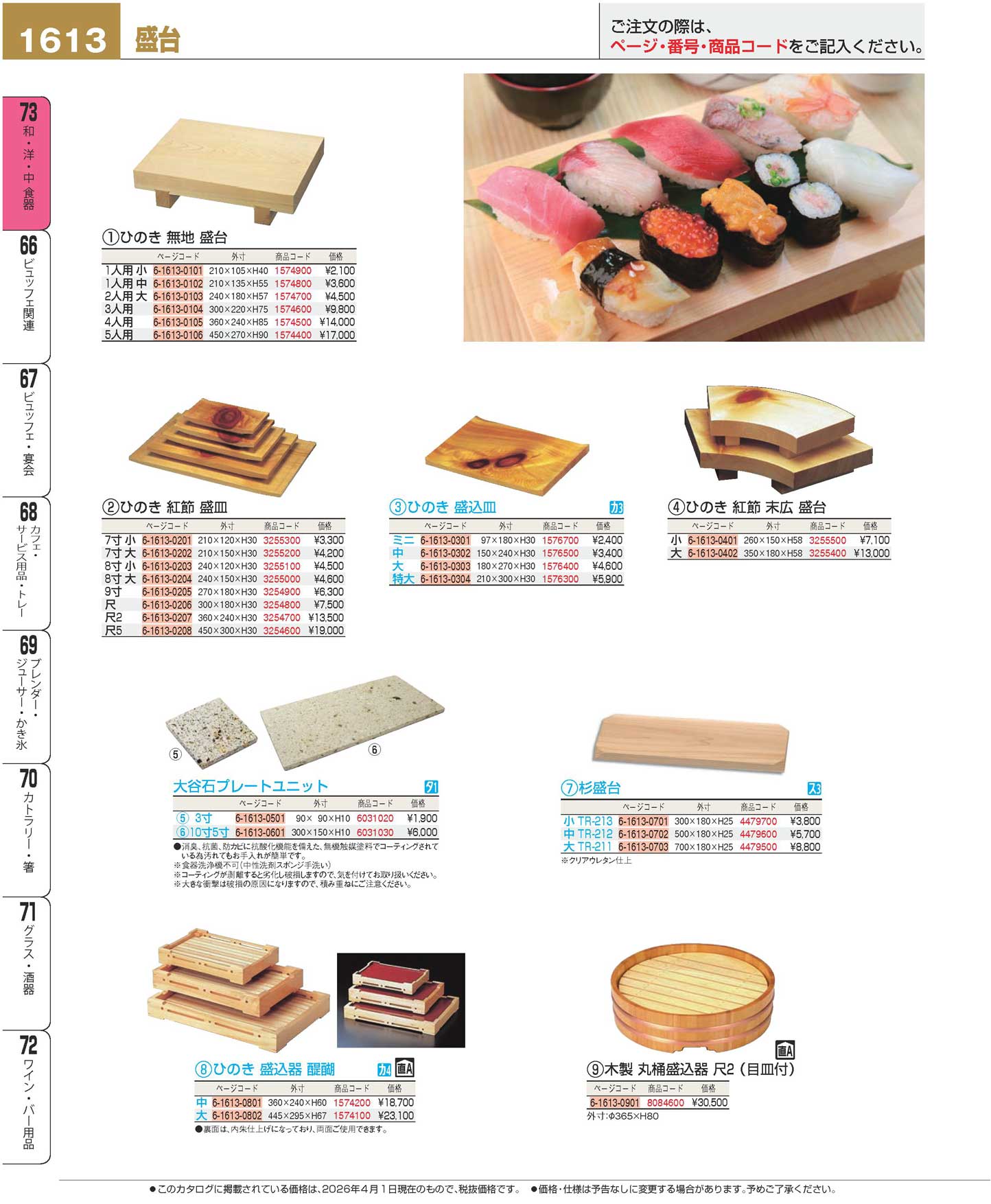 ひのき 無地 盛台 1人用 小(90)