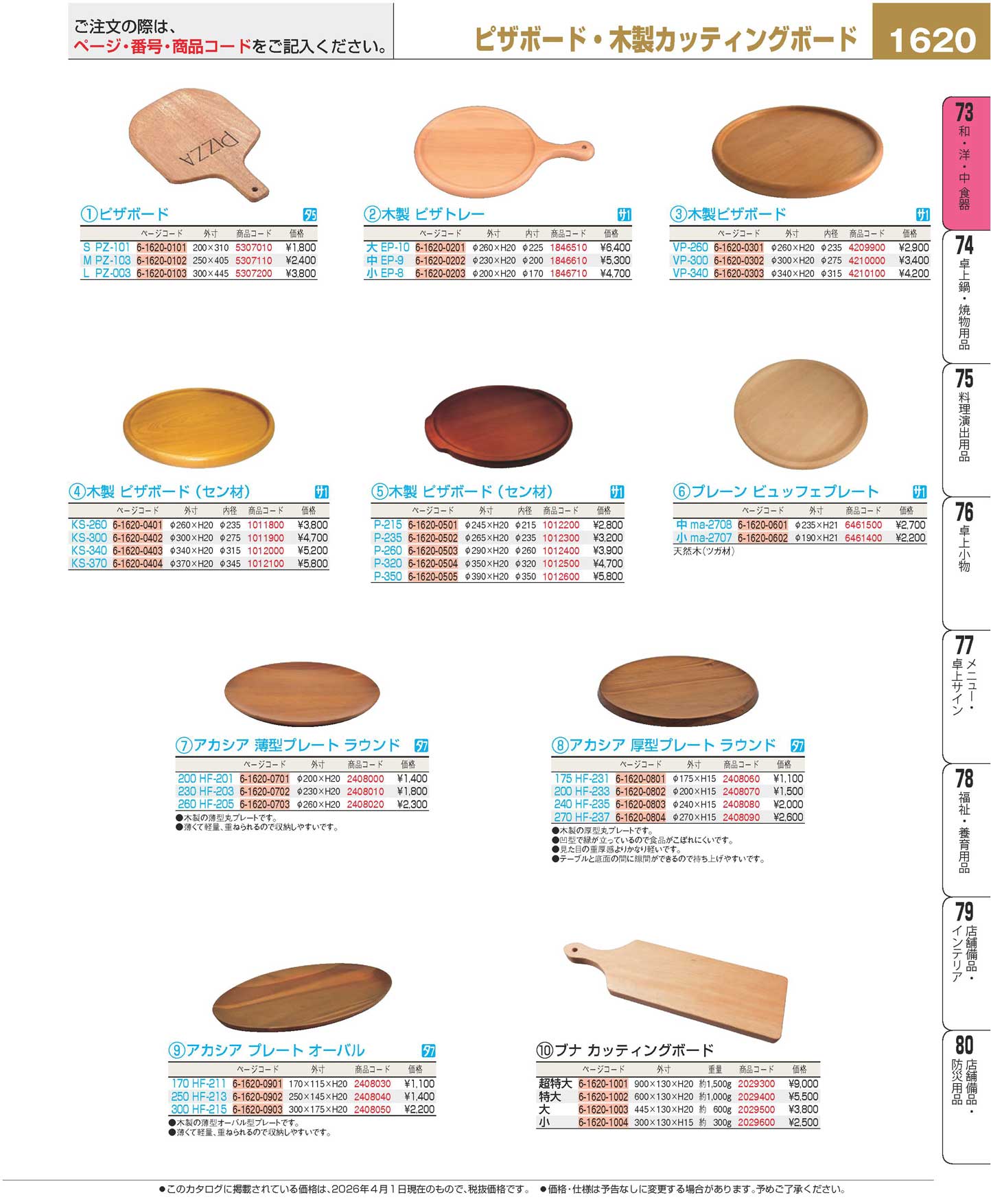 木製 ピザボード(セン材)P-260(120)