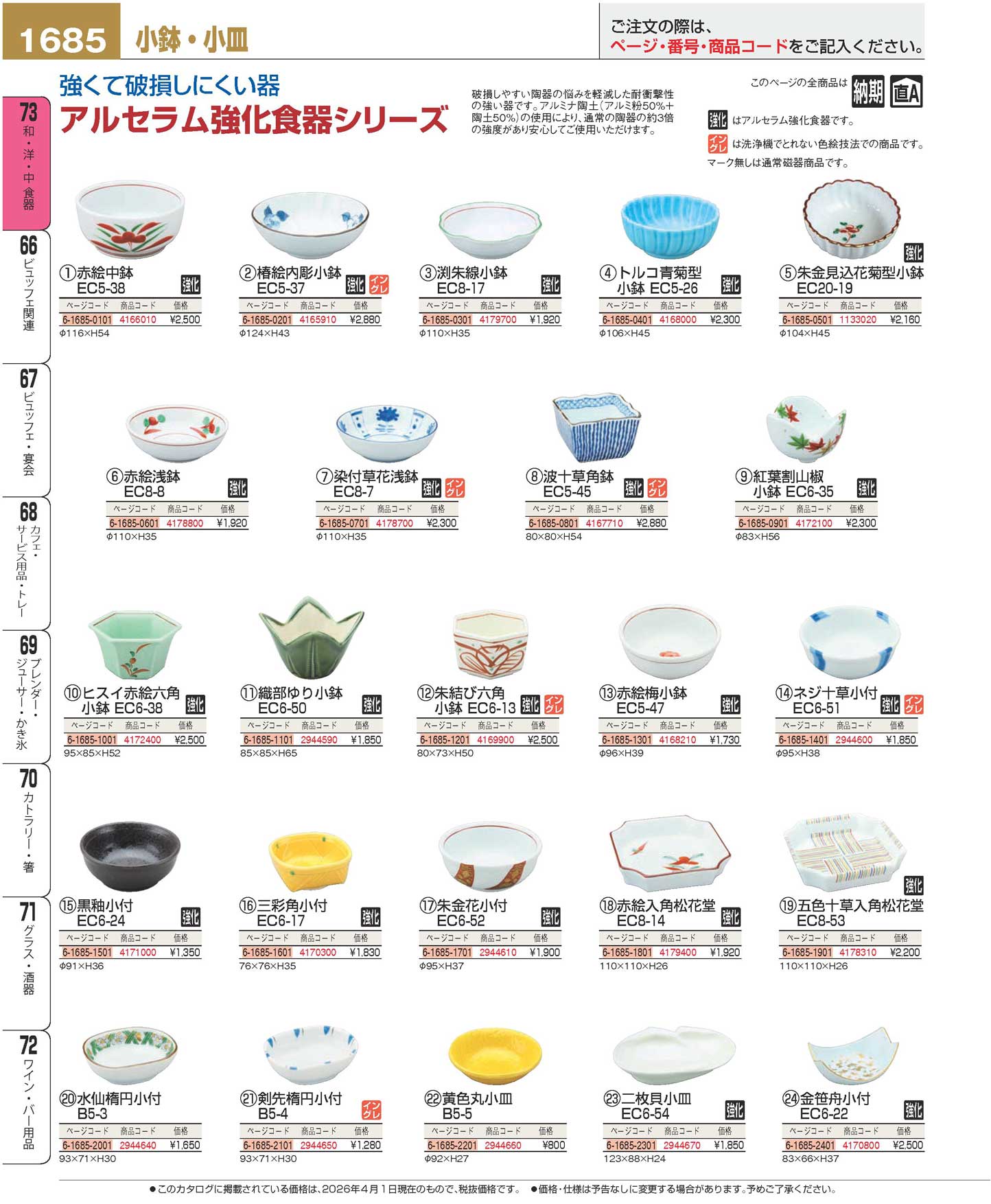 アルセラム強化食器 紅葉割山椒小鉢 EC6-35(90)