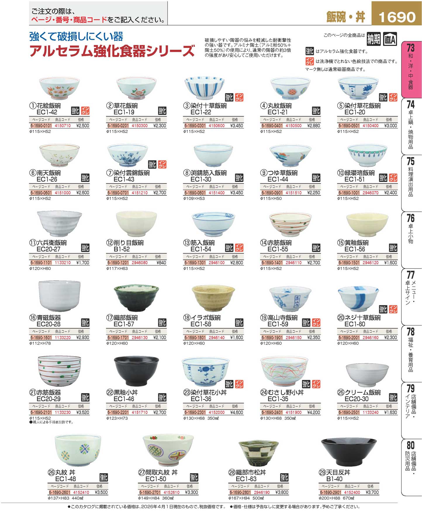 アルセラム強化食器 高山寺飯碗 EC1-59(90)